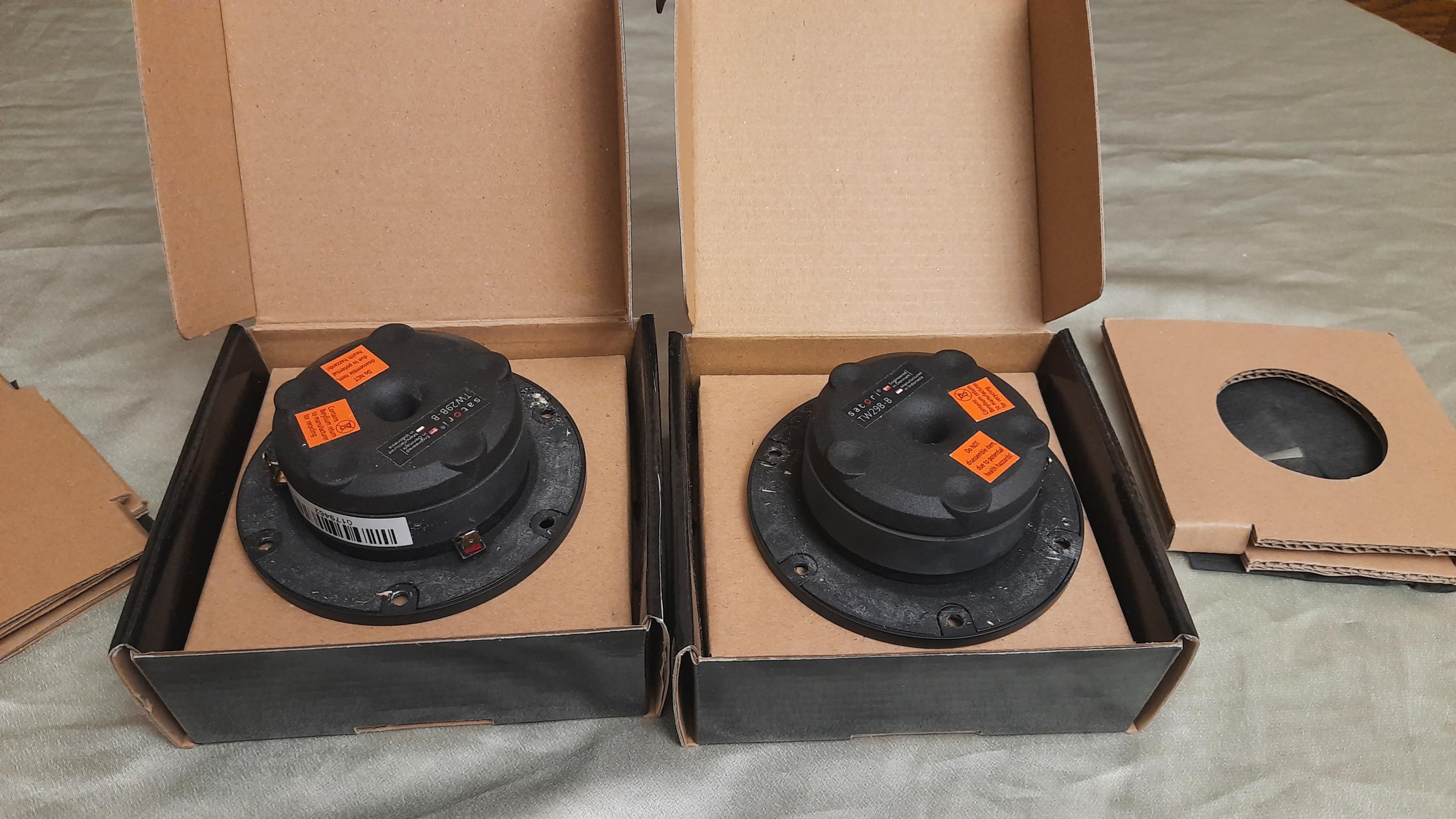 В продаже высококачественные бериллиевые твиттеры SB Acoustic из топовой линейки Satory. Звучание очень музыкальное, комфортное, очень ровная АЧХ в диапазоне 2500-40000 гц.
