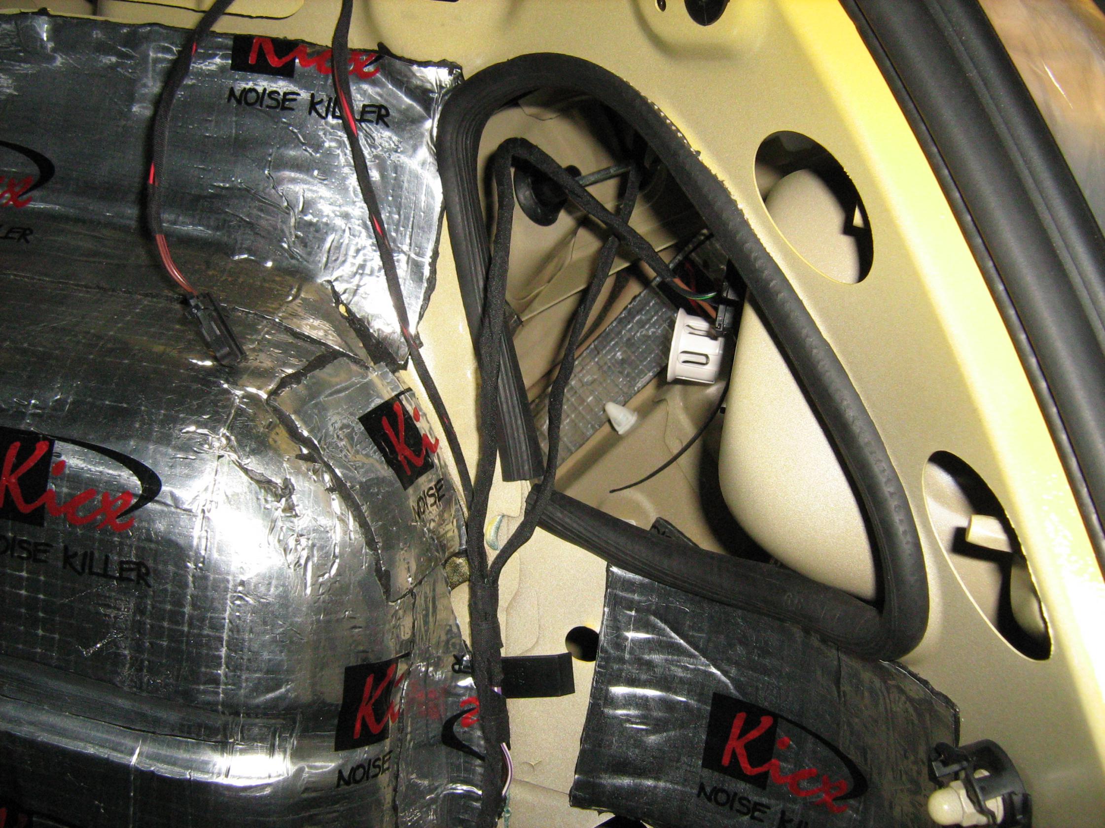 Принцип тот же что и при прокладке силовой - максимальная защита, заделка, крепление..... Изначально планировалось акустичку тянуть по крыше - левая и правая сторона соответственно, те же пластиковые кабель-каналы. Острые кромки в местах прохода закрываем резиновыми уплотнителями. |