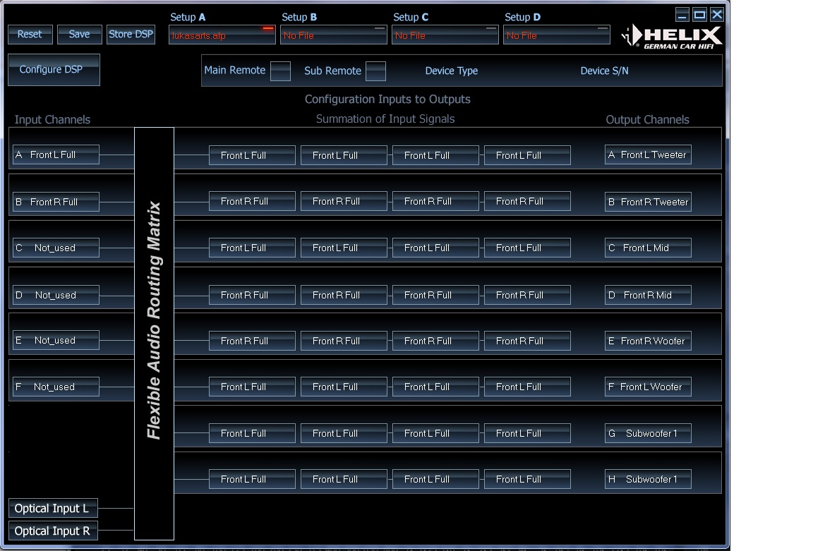 коммутация на высшем уровне... при подаче сигнала на СПДИФ - аналог вырубается и запускается ОПТИКА ...... на случай внедрения ШД плейера))) в моих настройках спутаны мидбасы - но на самомо деле я это сделал специально - так как у немцев линейные выходы перевернуты в верх НОЖКАМИ - а линейку перекручивать неохота.... |