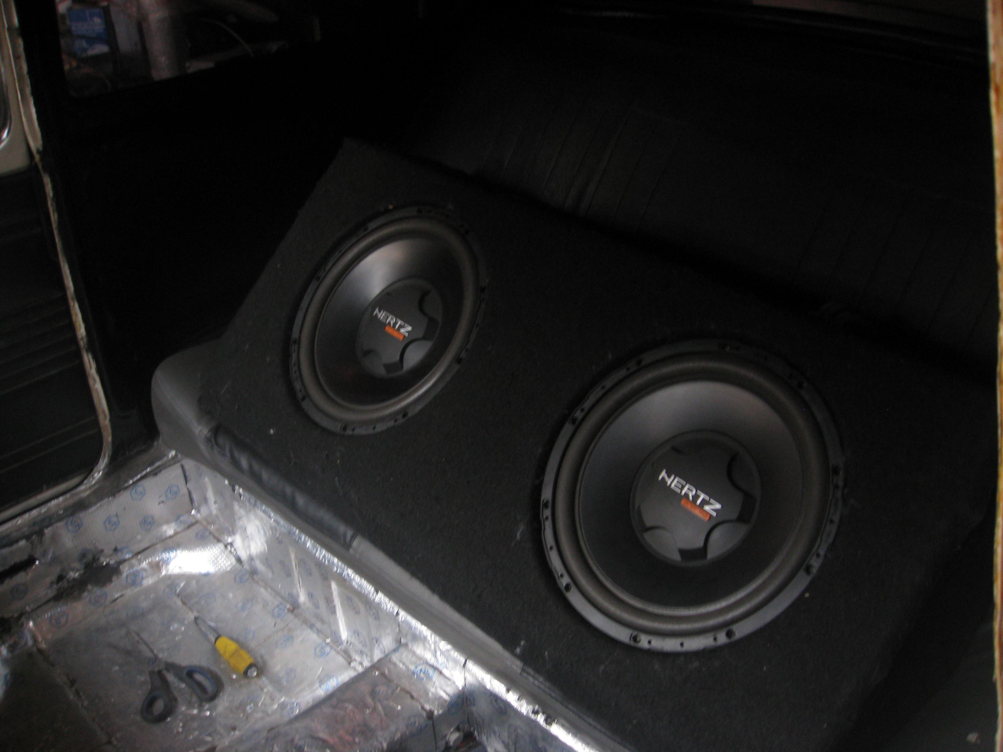 Малыши пока стоят на заднем сиденьи, а бас на торпеде, все по феншую =) в скором времени будут за спинкой вместо бака.