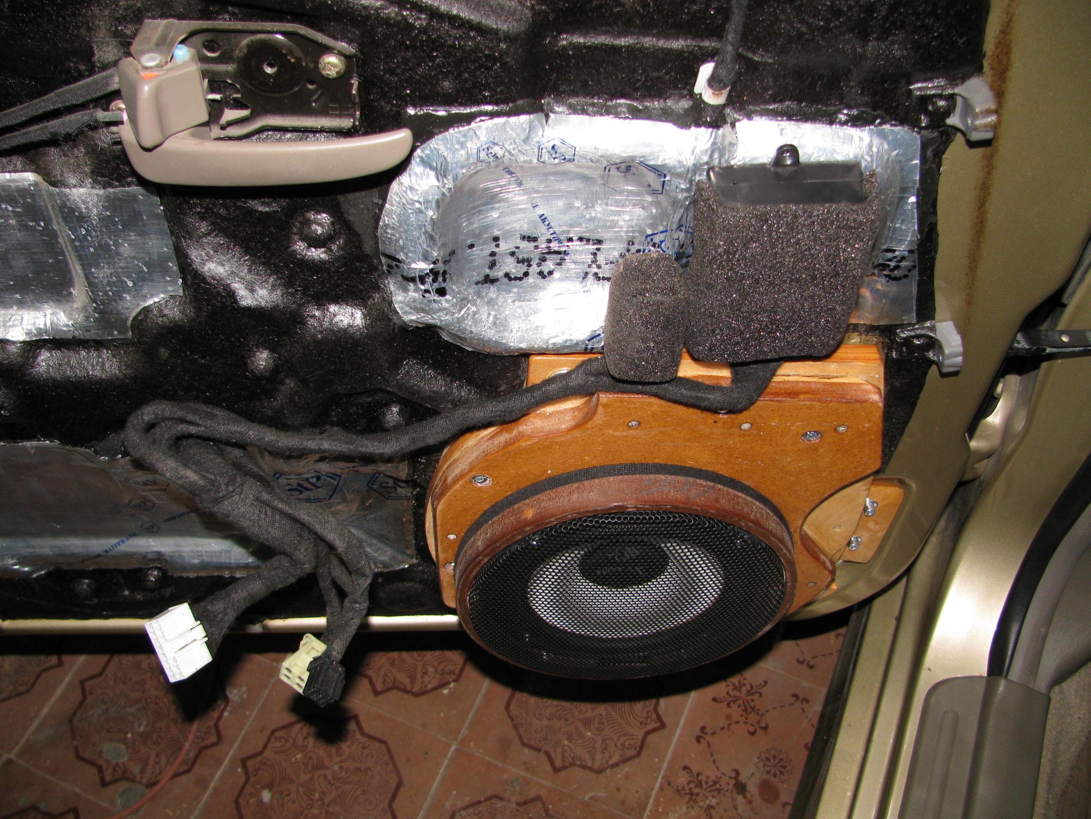 Двери еще не закончены, но поскольку про них заговорили,расскажу о процессе. Для начала определил на сколько смогу увеличить отверстие под динамик...