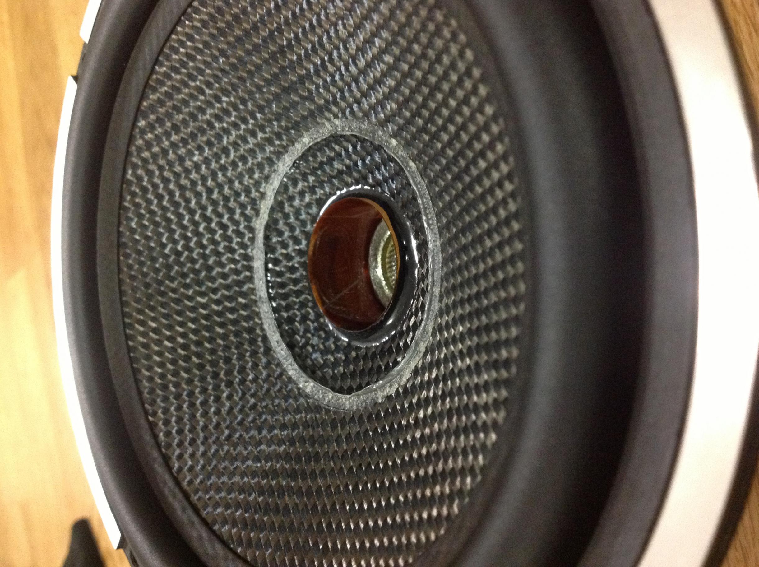 Для отрыва колпачка от диффузора нужно расшевелить и ослабить шов склеивания путём вжимания краёв колпачка к основанию катушки, в то же время придерживая дифф с обратной стороны пальцами чтобы избежать перекоса катушки