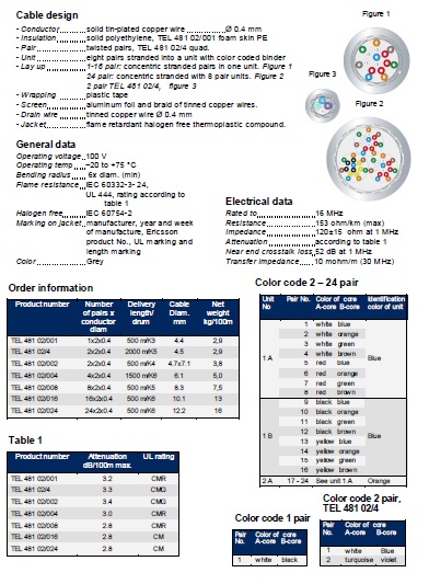 Есть 5,5 м. кабеля Ericsson TEL 48102/008 - 8 витых пар, моножила из луженой меди, изоляция - целлофан, алюминиевая фольга, оплетка (из чего - не знаю, но не магнитится), ПВХ.