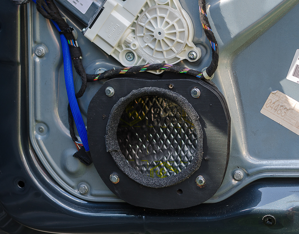 Вирішив таки заморочитись з заміною фронту. ВЧ зроблені текстильним способом на базі штатних кутиків дзеркал, які обтягнуті акустичною тканиною. Все максимально просто.