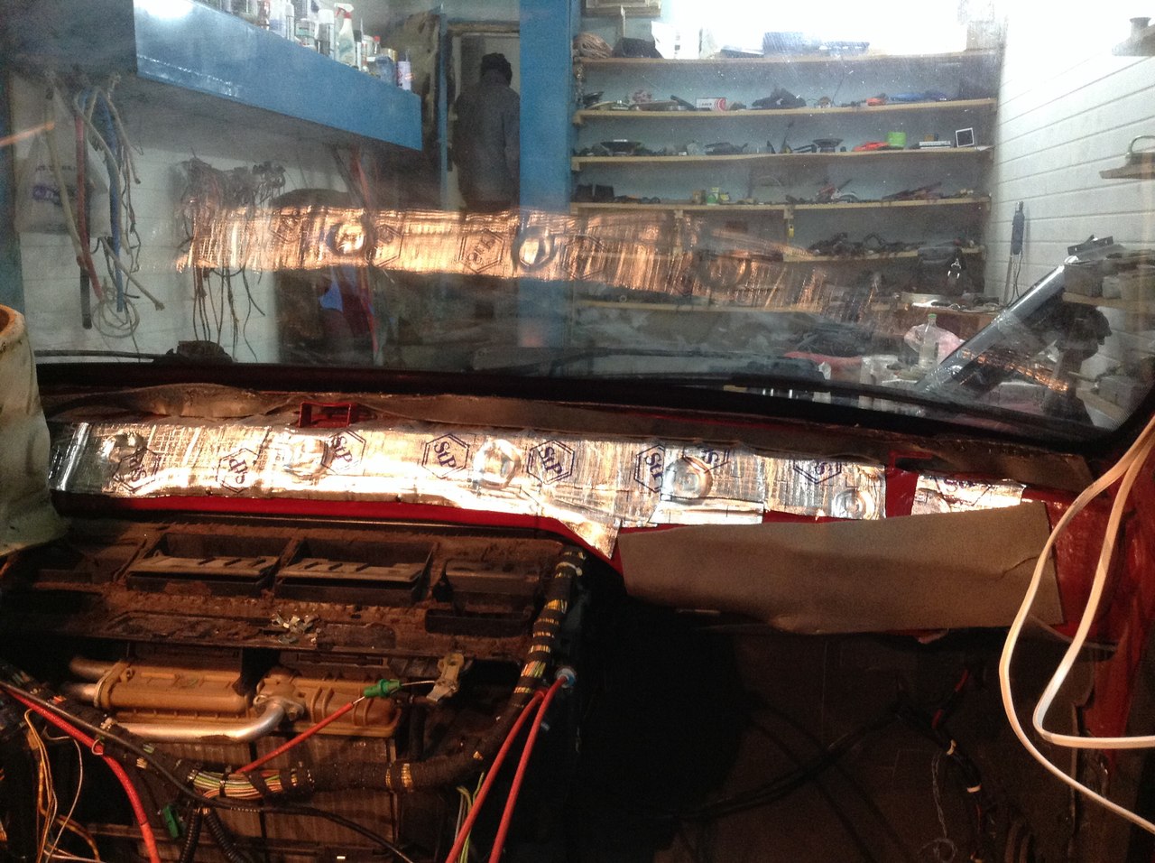 По всей машине было сделанно ШВИ кроме моторного щита (под торпедой). Решился что пора.... снял торпеду, чистенько всё, но блин старые уплотнители особенно печки (паралон) просто рассыпался, ему на смену пришёл битопласт. В общем начал возиться с "подторпедным" пространстом. Паралельно сделал себе межблок, на RCA разъемах амфенол и длс кабеле SC - косичка =)