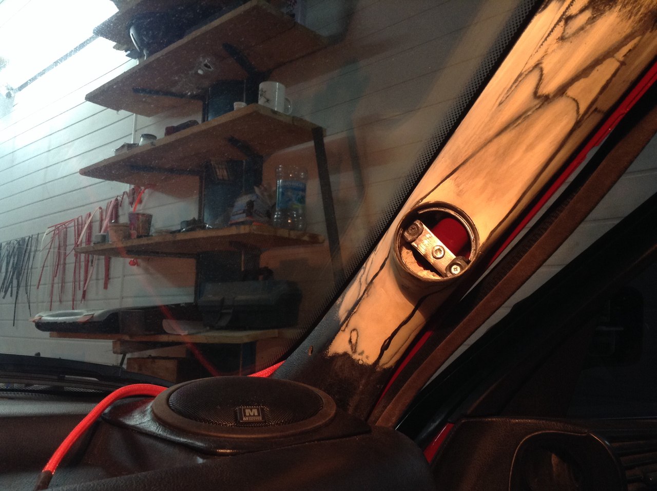 Подиумы на вч. Юстировка, все дела, короче говоря нацелил я их на середину между водителем и пассажиром. Игра с наклоном - была. В случае с нынешним вч и с прошлым фокаловским (тоже вогнутый купол) показало, что если наклонить немного в "лоб" водителю и пассажиру, появляется переотражёнка от бокового стекла. (опускаем стекло и всё хорошо). Поэтому с углом пока остановился. По высоте - уровень носа - может немного ниже, иногда меняю посадку. (на дальние расстояние я ложусь, когда по городу да бочком - повыше и ровнее сажусь).