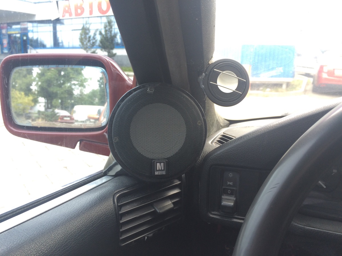 Опять вечера в гараже, опять эта смола, микрофон, короче говоря поставил. А поставил я, как и многие советовали СЧ в уголки зеркал, и с вч в одной плоскости. С серединкой подиум закончил, с вч сейчас осталось определиться, выбрать угол получше, короче притираемся...