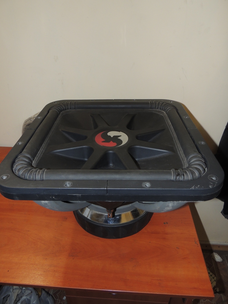 Не буду рекламировать, или пиарить. Большой 52 килограммовый квадрат 21 дюйм площадь диффузора. Номинальная мощность 5000 ватт.