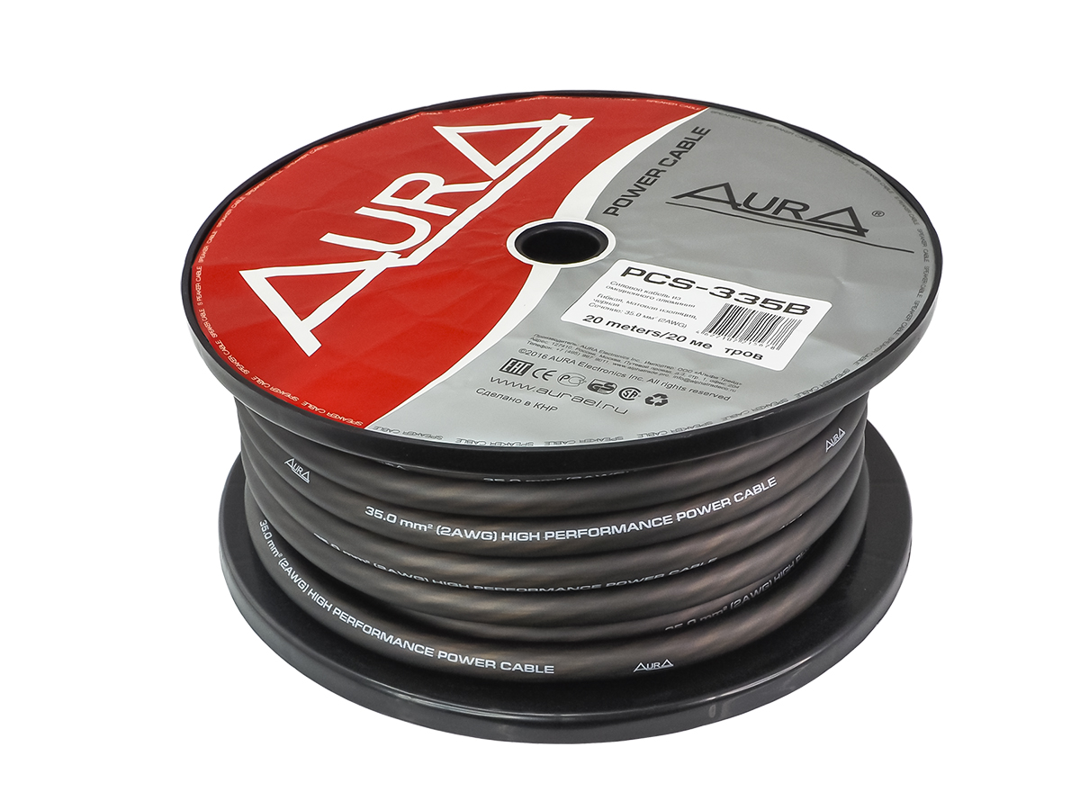 По умолчанию провода Aura 0 Ga (50 мм) и 2 Ga (35 мм)