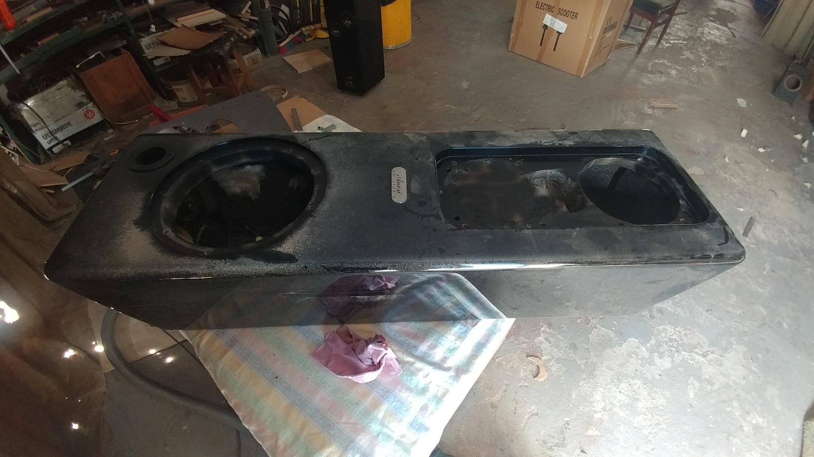 панелей для установки ВЧ и СЧ динамиков, расширили посадочные отверстия для НЧ.... Завершили укрепление и герметизацию обьемов , крепление цилиндрических обьемов для СЧ динамиков...Фактически все грязные, пыльные работы выполнены,внутренности АС продуты сжатым воздухом, обработаны пылесосом.... Панели для СЧ и ВЧ в покраске.... Ждем их и динамики....а также изготовим проставочные кольа Т=4мм для ВЧ и СЧ головок