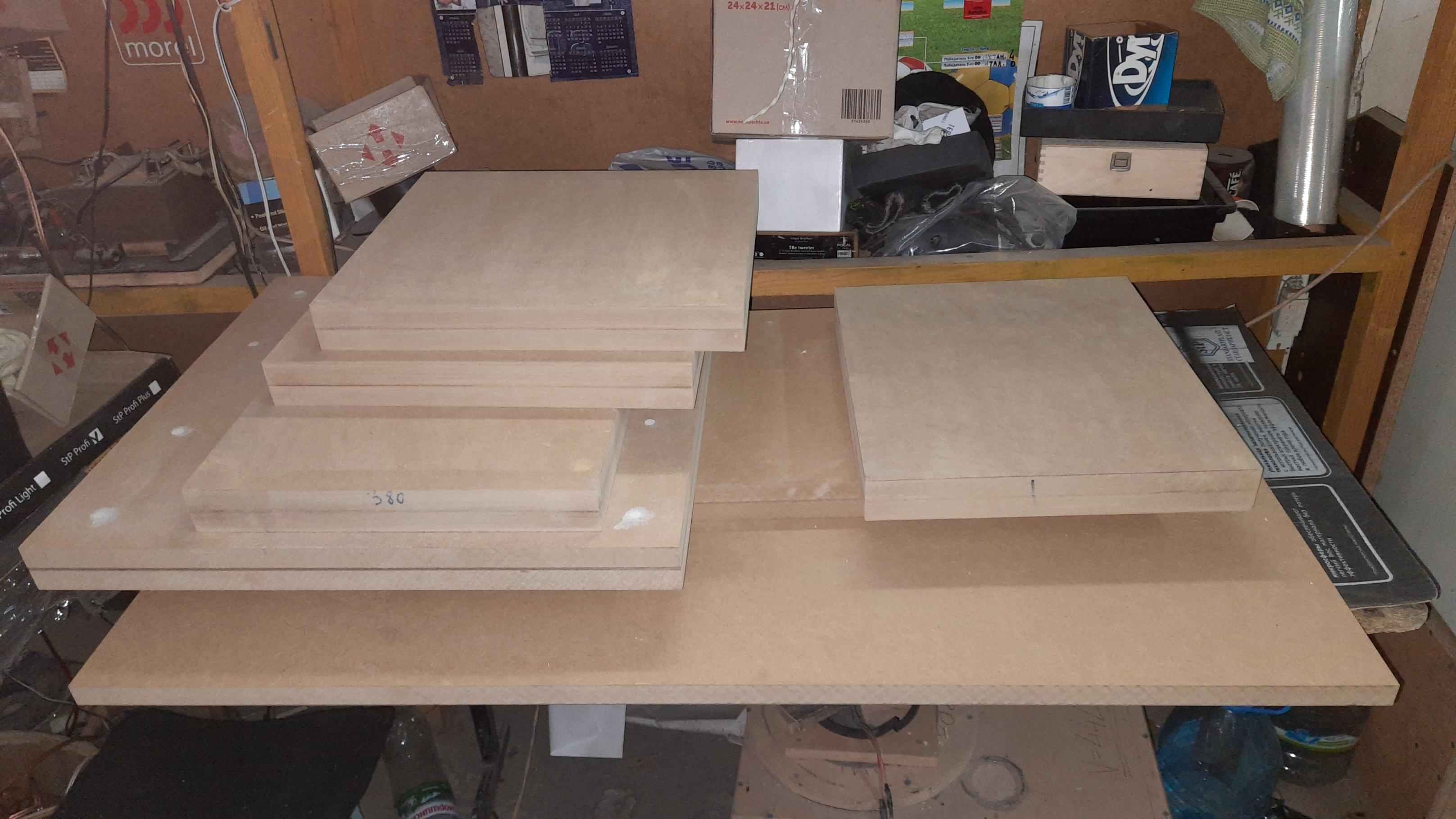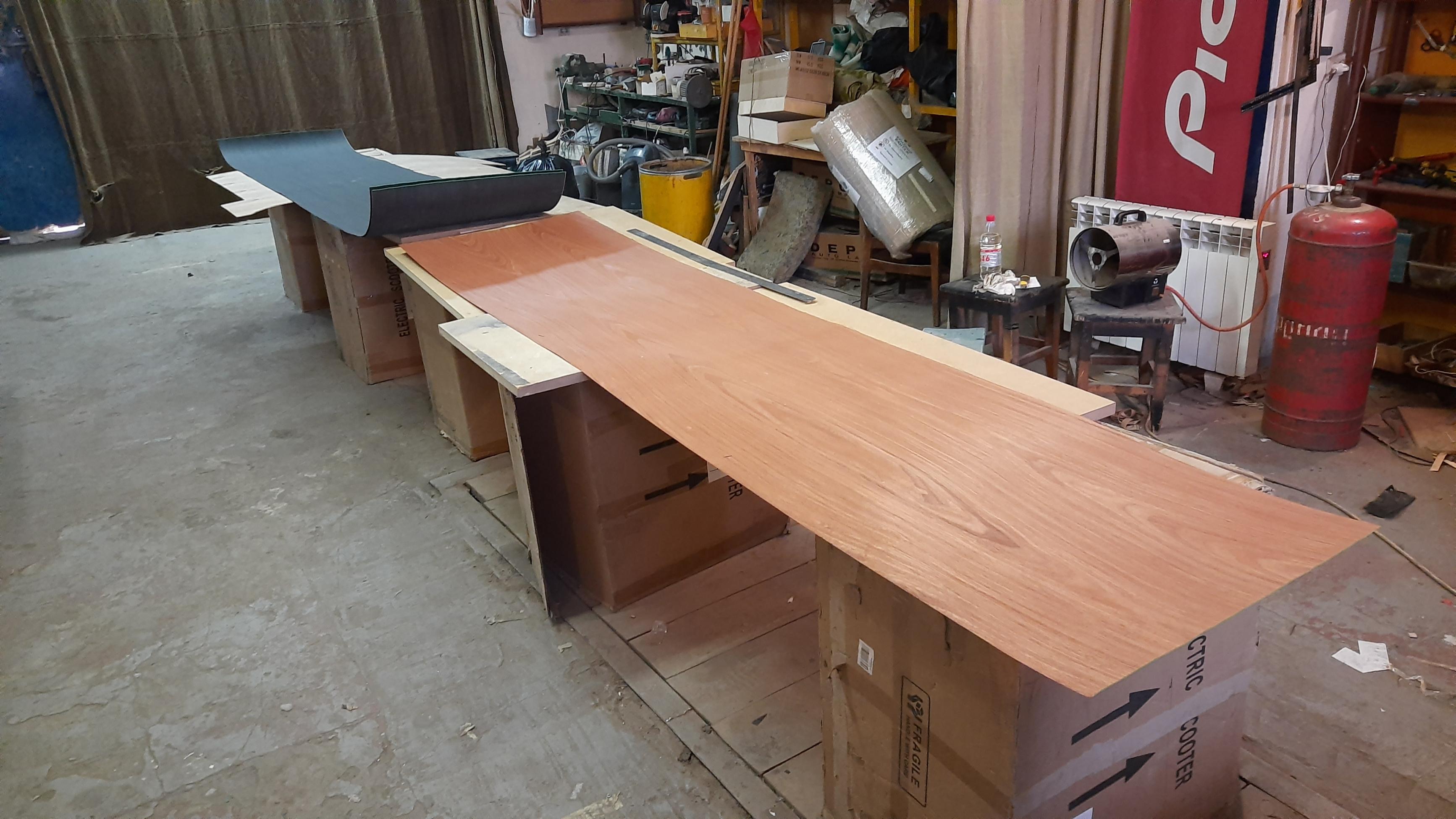 Опорные плиты для расстановки аппаратуры готовы, нанесено многослойное покрытие... Симпатично смотрятся. Метал. опоры в покраске.приступили к шпонированию несущих панелей. А они большие по площади, небыстрое это дело, правда и спешить то некуда сейчас...