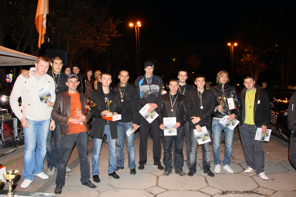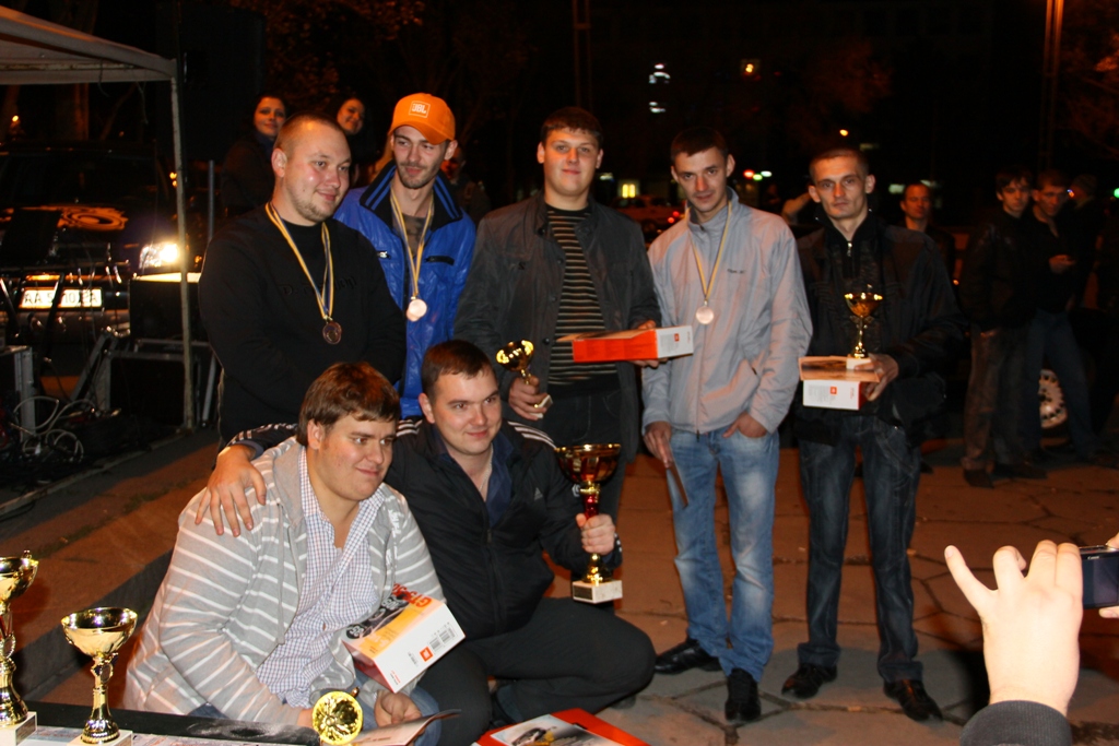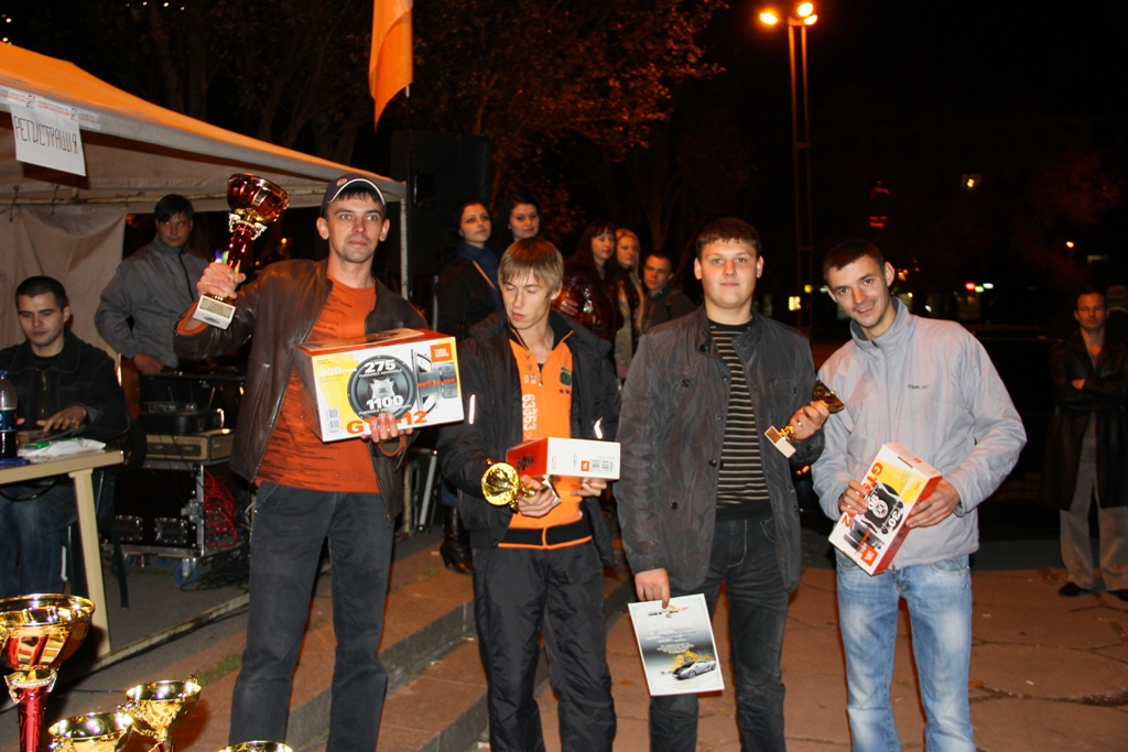 Класс "Новичок" I место Team Vivisector (ВАЗ 21130) 275,6 дБ 141,2 дБ 134,4 дБ II место Наталуха Дмитрий (ЗАЗ Таврия) 274,8 дБ 139,9 дБ 134,9 дБ III место Григорьев Евгений (ЗАЗ 1102) 274,6 дБ 138,9 дБ 135,7 дБ IV место Олейник Максим (Славута) 272,5 дБ 138,5 дБ 134,0 дБ V место Оглы Вячеслав (ВАЗ 2108) 272,2 дБ 139,8 дБ 132,4 дБ VI место Роговой Василий (ЗАЗ 1102) 271,3 дБ 138,1 дБ 133,2 дБ VII место Самусь Сергей (Daewoo Lanos) 266,7 дБ 133,4 дБ 133,3 дБ VIII место Волынский Максим (Skoda Fabia) 265,1 дБ 132,3 дБ 132,8 дБ IX место Буряк Сергей (Fiat Croma) 264,0 дБ 133,0 дБ 131,0 дБ IX место Косарев Юрий (ВАЗ 2109) 264,0 дБ 134,8 дБ 129,2 дБ X место Губка Виталий (ВАЗ 21140) 263,7 дБ 133,9 дБ 129,8 дБ XI место Жданов Алексей (АЗЛК) 262,2 дБ 130,7 дБ 131,5 дБ XII место Сологуб Александр (ЗАЗ Таврия) 257,9 дБ 130,6 дБ 127,3 дБ XIII место Фесенко Антон (Daewoo Lanos) 248,2 дБ 124,2 дБ 124,0 дБ Класс "Любитель" I место Team Vivisector (ВАЗ 21130) 285,3 дБ 146,1 дБ 139,2 дБ II место Степаненко Максим (Лада Калина) 281,8 дБ 142,2 дБ 139,6 дБ III место Межевский Александр (ВАЗ 2115) 281,3 дБ 142,2 дБ 139,1 дБ IV место Дьяков Ярослав (Renault Kangoo) 279,7 дБ 142,9 дБ 136,8 дБ V место Андрианов Вячеслав (Peugeot Partner) 270,8 дБ 137,3 дБ 133,5 дБ Класс "PRO" I место Бондаренко Роман (ВАЗ 2112) 294,5 дБ 150,5 дБ 144,0 дБ II место Барсук Ярослав (Toyota RAV4) 289,0 дБ 146,2 дБ 142,8 дБ III место Власов Сергей (ВАЗ 2109) 286,9 дБ 144,6 дБ 142,3 дБ IV место Дубов Антон (ВАЗ 2104) 286,1 дБ 144,7 дБ 141,7 дБ V место TORNADO Team (ВАЗ 2115) 285,2 дБ 145,0 дБ 140,2 дБ VI место Межевский Александр (ВАЗ 2115) 280,6 дБ 141,5 дБ 139,1 дБ Класс "UNLIMITED" I место Бондаренко Роман (ВАЗ 2112) 296,5 дБ 151,8 дБ 144,7 дБ II место Авксентьев Дмитрий (Renault Kangoo) 292,2 дБ 149,2 дБ 143,0 дБ III место Барсук Ярослав (Toyota RAV4) 288,9 дБ 146,1 дБ 142,8 дБ IV место Андрийчишин Андрей (ВАЗ 2108) 286,5 дБ 145,9 дБ 140,6 дБ V место TORNADO Team (ВАЗ 2115) 285,8 дБ 145,1 дБ 140,7 дБ VI место Дубов Антон (ВАЗ 2104) 285,5 дБ 144,0 дБ 141,5 дБ * Результаты замеров в основных классах указаны в порядке: Общий - С закрытыми дверями - С открытыми дверями. Дополнительные классы Класс "ШОУ" I место Роман и Олег (ВАЗ 2112) 134,9 дБ II место Барсук Ярослав (Toyota RAV4) 134,4 дБ III место Дубов Антон (ВАЗ 2104) 133,2 дБ IV место TORNADO Team (ВАЗ 2115) 132,9 дБ * Результаты замеров указаны: с открытой правой передней дверью, измерительный датчик был установлен на специальном штативе в полуметре от автомобиля (по линии дверного проема). Класс "HOME EDITION" I место Роман и Олег (ВАЗ 2112) 296,4 дБ 151,8 дБ 144,6 дБ II место Барсук Ярослав (Toyota RAV4) 283,2 дБ 145,9 дБ 142,1 дБ III место TORNADO Team (ВАЗ 2115) 282,9 дБ 143,8 дБ 139,4 дБ IV место Дубов Антон (ВАЗ 2104) 282,9 дБ 143,3 дБ 139,6 дБ V место Дьяков Ярослав (Renault Kangoo) 280,4 дБ 144,5 дБ 135,9 дБ VI место Степаненко Максим (Лада Калина) 279,9 дБ 140,0 дБ 139,0 дБ VII место Андрианов Вячеслав (Peugeot Partner) 274,1 дБ 139,8 дБ 134,3 дБ VII место Косарев Юрий (ВАЗ 2109) 263,7 дБ 134,2 дБ 129,5 дБ * Результаты замеров указаны в порядке: Общий - С закрытыми дверями - С открытыми дверями. Класс "КЛАССИК" I место Роман и Олег (ВАЗ 2112) 152,0 дБ II место TORNADO Team (ВАЗ 2115) 144,7 дБ III место Дубов Антон (ВАЗ 2104) 144,4 дБ IV место Оглы Вячеслав (ВАЗ 2108) 138,8 дБ * Результаты замеров указаны только с закрытыми дверями. |