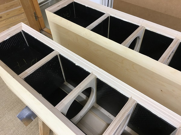 Продолжаем сборку НЧ корпусов ...не спеша и очень тщательно. С большим энтузиазмом и желанием))) Обязательные внутренние ребра жесткости. Фазоинвертор щелевой...и проще и помещается нужная длина, с настройкой на 30 Гц. Плюс дополнительно увеличивает жесткость корпуса |