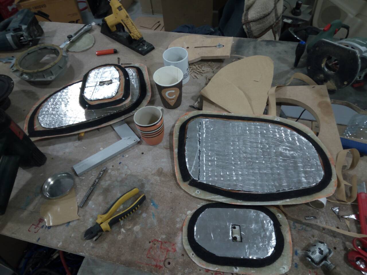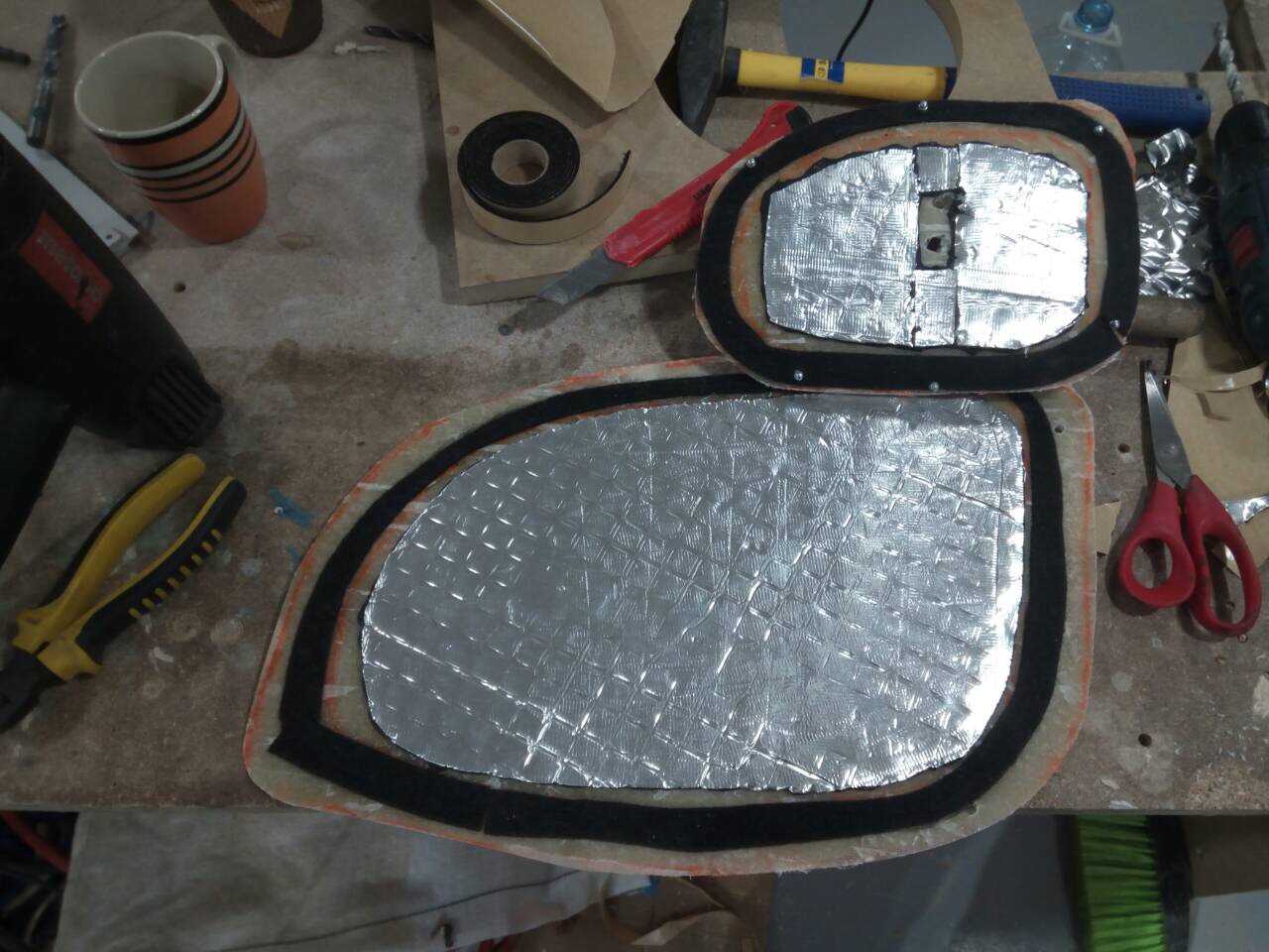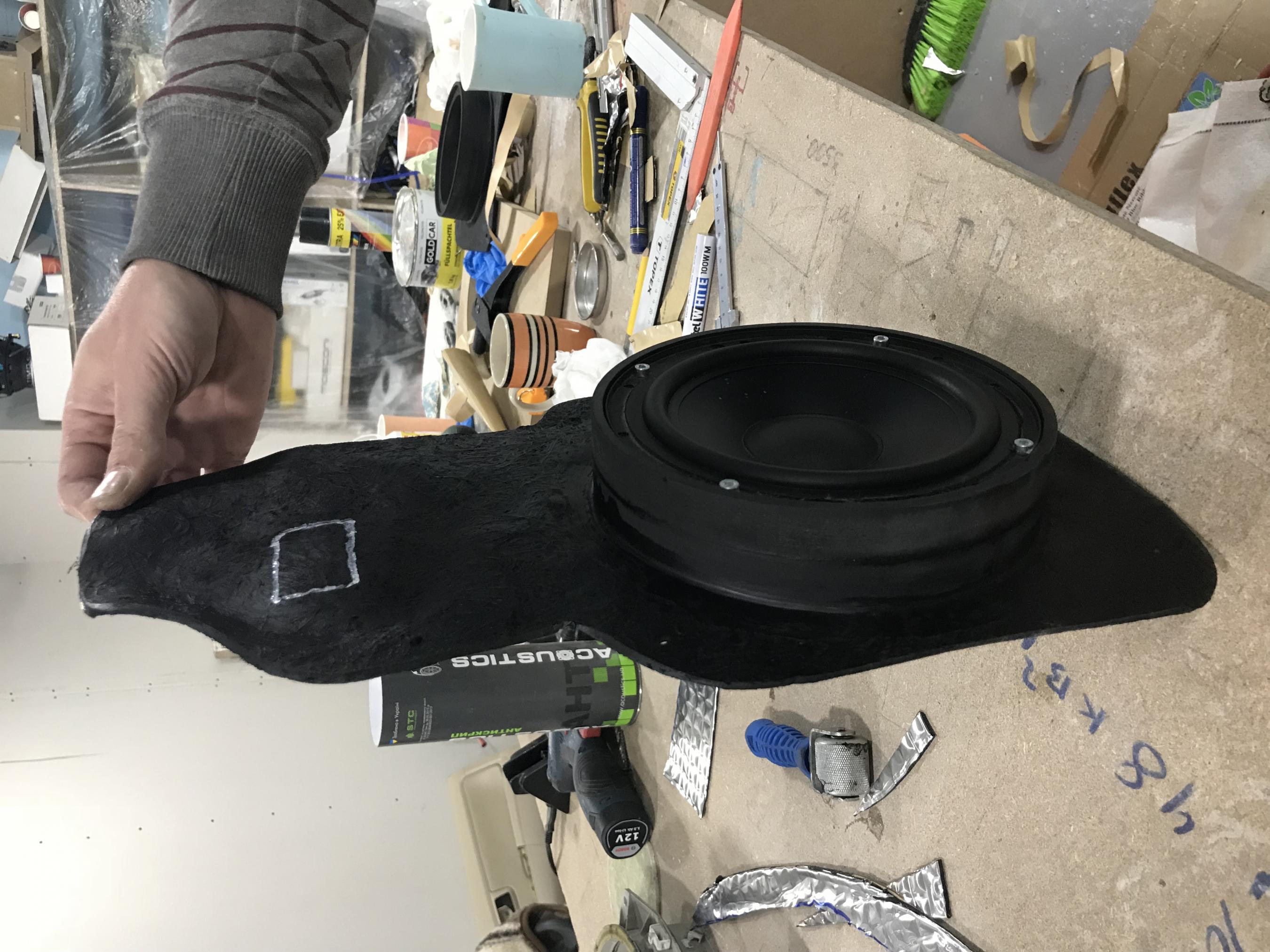 звук издают ужасный. При вскрытии карты выяснилось что динамики были просто напросто прикручены саморезами на родной пластмассовый подиум. Беда. Первым делом отодрали вибру после предыдущих инсталеров, которые умудрились ее еще и приклеить на клей. Тем не менее, местами она все равно отпала. Потом отмыли двери. И начали все заново. Виброизоляция внешней филенки 4мм виброй, изготовление заглушек из стекловолокна и смолы. Так как они по размеру большие как и сама дверь, то заглушки сделали по 5мм толщиной плюс прокатаны 3мм виброй. и основная заглушка на которой базируется намертво подиум для мидбаса, толщиной 6мм. Дальнейший процесс вы можете увидеть на фото) Звук получился плотный, насыщенный с классным панчем. Как для бюджетного мидбаса - очень классно! Чуть позже перенесем твитеры переделанные подиумы в уголках зеркал. |