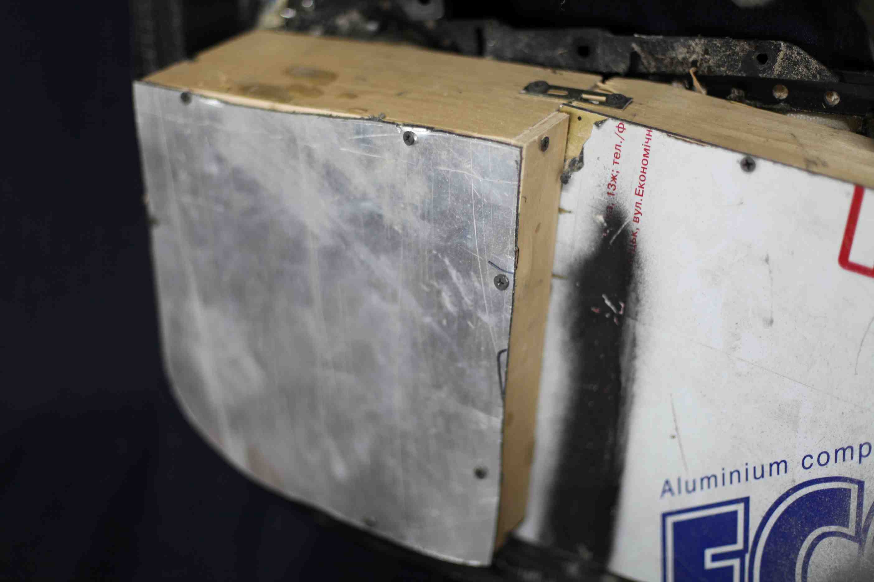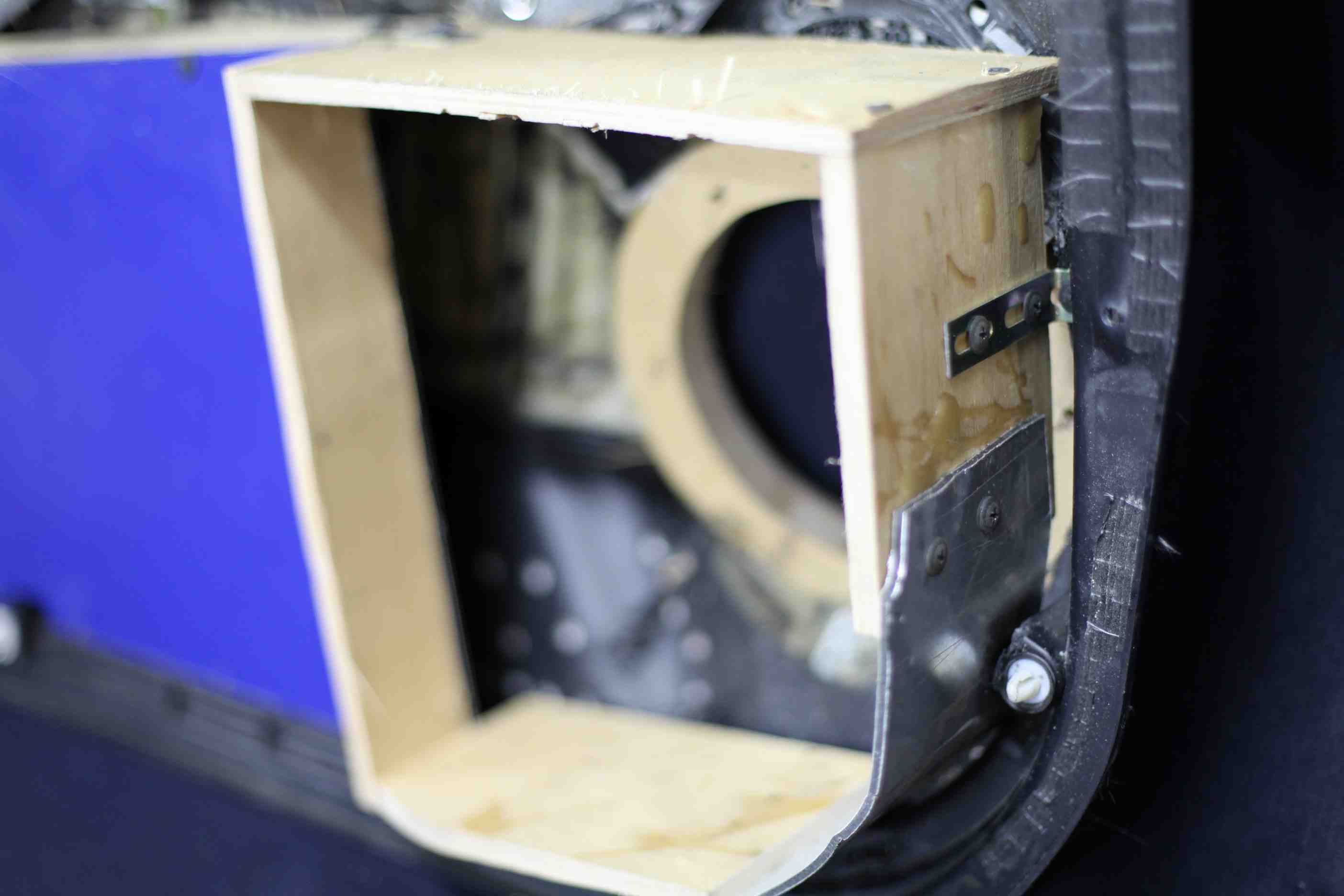 Вот немного фото того как делались ящики и какие материалы использовались. Кстати сфоторгафировал чем приклеивали предохранитель к воздухану. Глубина от железного кольца до задней стенки 15-16см.