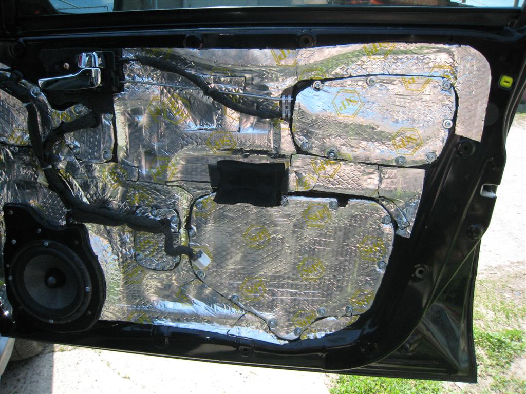 Затем укатывал СТП Голд. Отверстия внутренней филенки заделывал с помощью самодельных пластин (стекломат и эбокситка). Во первых это дает нужную жесткость, во вторых - несложно в изготовлении. В третьих малый вес и простота снятия в случае чего. Потом, прикатка СТП, прикручивание крышек на болты. Я думаю, процесс понятен по фоткам… |