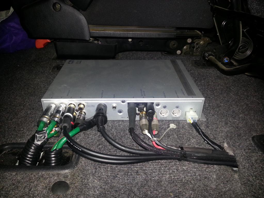 Переносите его под переднее, поближе к фронтальному усилителю, а вот сабовый усь можно под заднее, поближе к сабу