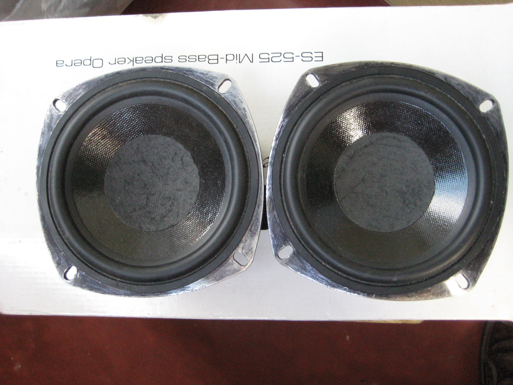 E.O.S. ES 525 (13 см) Мидбасс серии OPERA. Монтажная глубина 65мм. По рекомендациям с форума блюзмобиля был удален верхний слой пропитки центральных колпачков для лучшей середины. Играли сперва в ящиках 6л. Потом в дверях. На одном динамике был небольшой прокол подвеса, был заклеен (на фото видно), на звуке не сказалось. В комплекте только миды в родной упаковке. Сеток и проводов нет. Цена 320грн. Тел.: (096)498-О7-46, (063)70О-50-32 Саша.