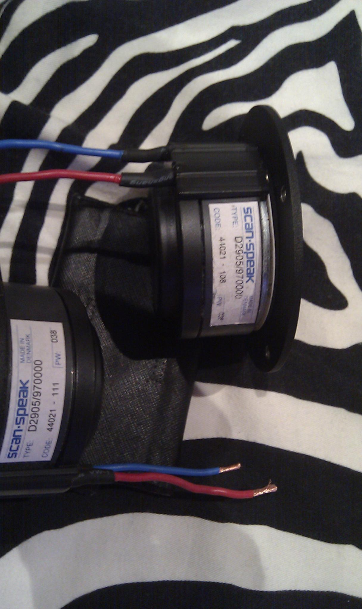 Состояние б/у, технически всё отлично, косметика на 4-ку. Играли недолго в авто , потом в домашке. Родная упаковка имеется. Цена 1350 грн. Пример установки в авто http://www.avtozvuk.com/az/Az_1105/046-050.htm Также продам свои твитеры Scan-speak D2905-970000, это тот же классический "ревелатор" 990000 только с плоским фланцем. Шикарный звук, очень мощные с низкой резонансной. Играли в домашке. Состояние б/у, технически работают отлично, но один был в ремонте (подпаивались подводящие проводки к з.к., Работу проводил профессионал, в Днепре его все знают), косметика на 4-ку. Инфо по ссылке http://www.madisoundspeakerstore.com...-textile-dome/ Цена пары, как за один новый 1500 грн. 050 321 20 41 Владимир, Днепропетровск. Последний раз редактировалось VlaBer; 03.06.2013 в 00:20. |