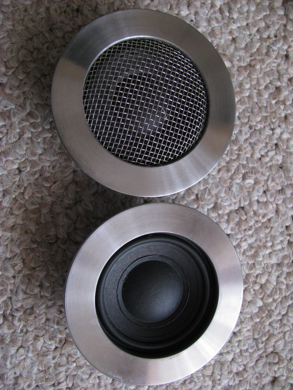 Известные некоторым на сайте среднечастотники, подарок от БМВ 7 или 5й серии. продаются только с флянцем из нержи. Цена 500грн. сетка в комплект не входит (она тоже из нержи но только 1шт, могу просто подарить, показательная с закосом под Icon, надо только в черный покрасить) Наружный диаметр установочного кольца 85мм, монтажный диаметр 70мм, установочная глубина 23мм, толщина флянца 3мм.