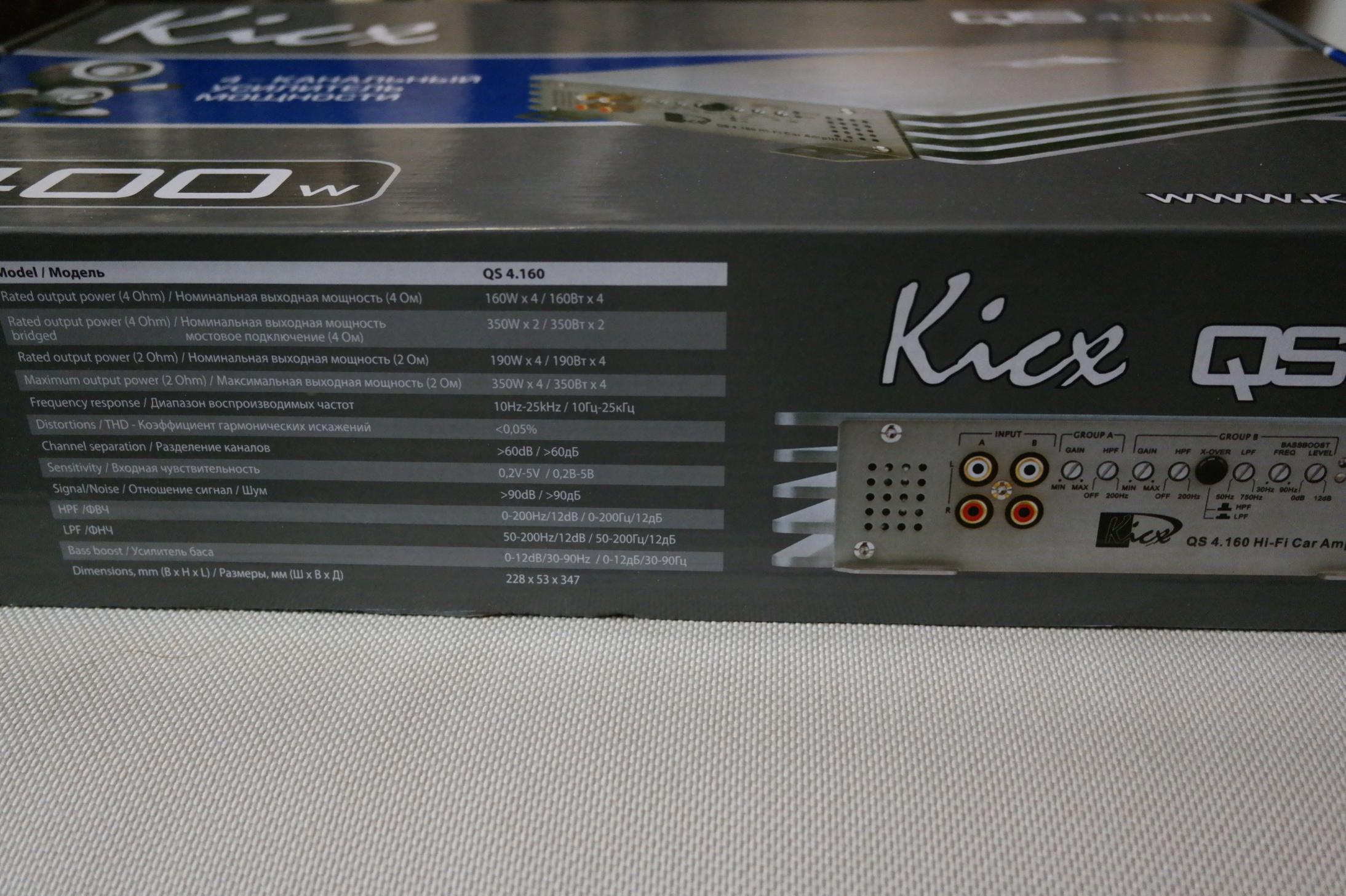 Номинальная мощность при 4 Ом, СТЕРЕО 160Вт x 4