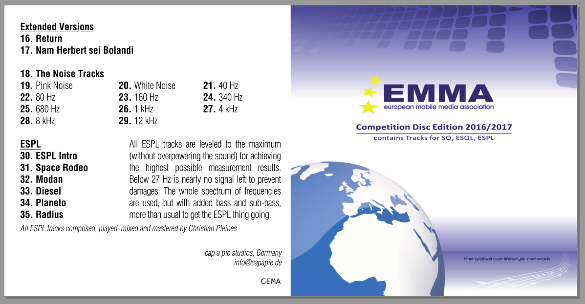 ![]() В 20-тых числах марта опубликуем CD 2016-2017, для ознакомления, по 15-20 сек. каждый трек, в формате МР3. А пока ... буклет нового CD ![]() пс. Методичку для судейства SQ переводим, опубликуем после Евротренинга, ближе к концу марта. Последний раз редактировалось Директор Луны; 07.03.2016 в 10:22. |