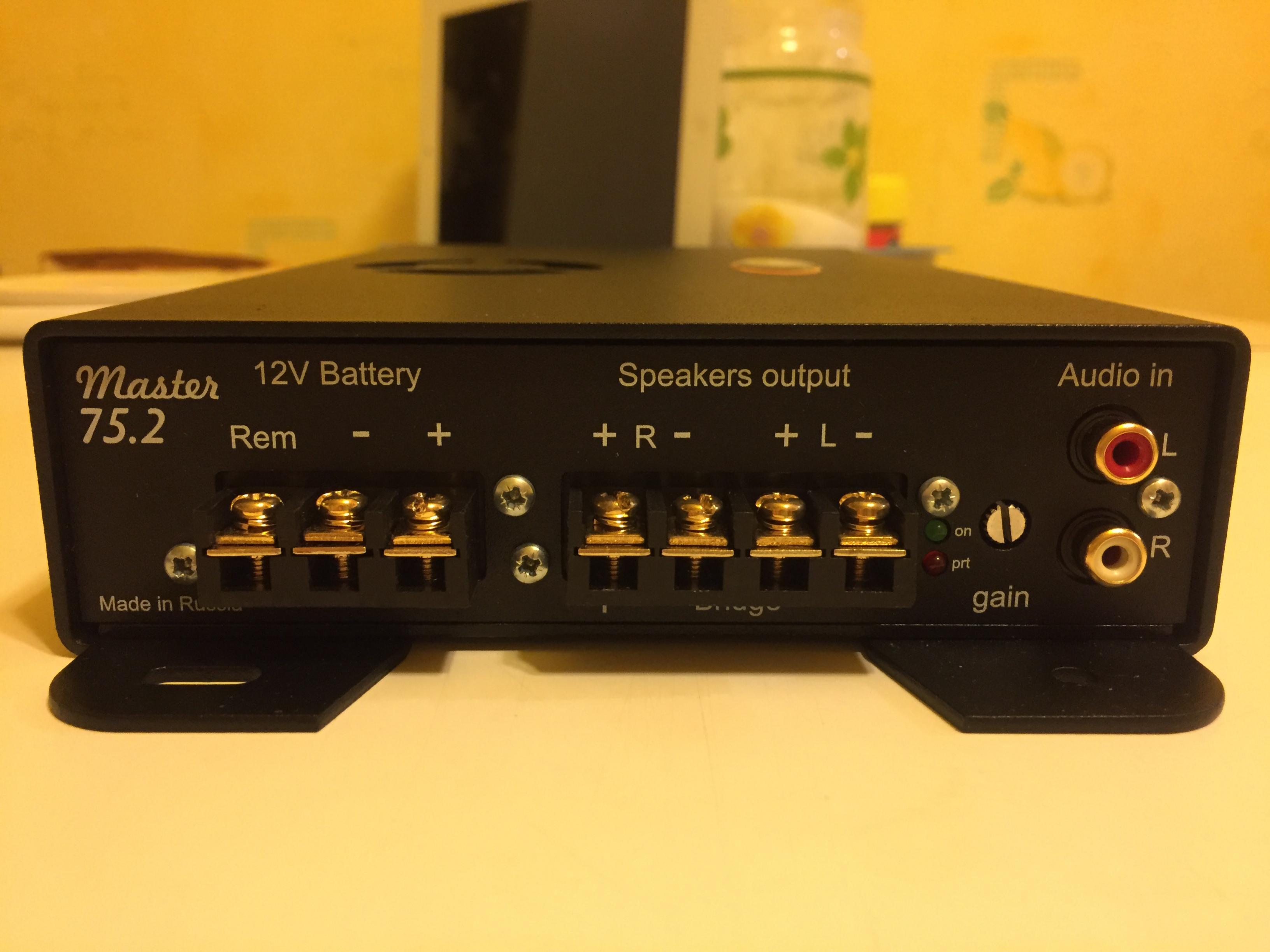 Был подключен на твитеры, работал полгода. Отличный вариант для сч-вч в процессорную систему, так как не имеет на борту фильтров. Качество звука очень высокое, как для такого малыша! Тем более в связке с топовыми твитерами Seas позволил очень хорошо раскрыть их потенциал. Продаю по причине апгрейда на более высокую серию Master Unlim от того же производителя. Цена 6000грн Описание и тех. характеристики. Отличительная особенность усилителей серии Master заключается в применении схемы прямого усиления без глубоких обратных связей с выходными каскадами на полевых транзисторах работающих в режиме АВ, которая обеспечивает высокие скоростные характеристики и как следствие комфортное "прозрачное" звучание. Усилитель имеет возможность подключения нагрузок по мостовой схеме. Конструктивно усилители выполнены в корпусах из алюминиевого сплава, покрытых краской, что обеспечивает хорошую стойкость к коррозии и обеспечивает дополнительный теплоотвод. Охлаждение пассивно-принудительное. Интенсивность охлаждения в принудительном режиме зависит от степени разогрева усилителя и автоматически переходит в пассивный режим при достаточном охлаждении. Усилитель имеет гальваническую развязку по электропитанию, что исключает неконтролируемые перетоки по цепям, что предотвращает возможность повреждения элементов усилителя, акустических- и других систем автомобиля. Усилитель имеет защиту от перегрева и от короткого замыкания по выходу в виде отключения электропитания схемы усилителя со светодиодной индикацией события. Номинальная мощность одного канала, не менее - 75Вт (4Ом;11.5вольт) - 120Вт (2Ом;11.5вольт) Мостовое подключение - 240Вт (4Ом;11.5вольт) Диапазон частот - (по уровню +/-3Дб) - 0,02-150кГц Суммарный коэффициент гармонических искажений, не более - 0,1% Отношение сигнал/шум, не менее - 120Дб Разделение каналов, не менее - 100Дб Масса усилителя - 800грамм Габариты: Ширина- 158мм, Длина- 288мм, Высота- 46мм |