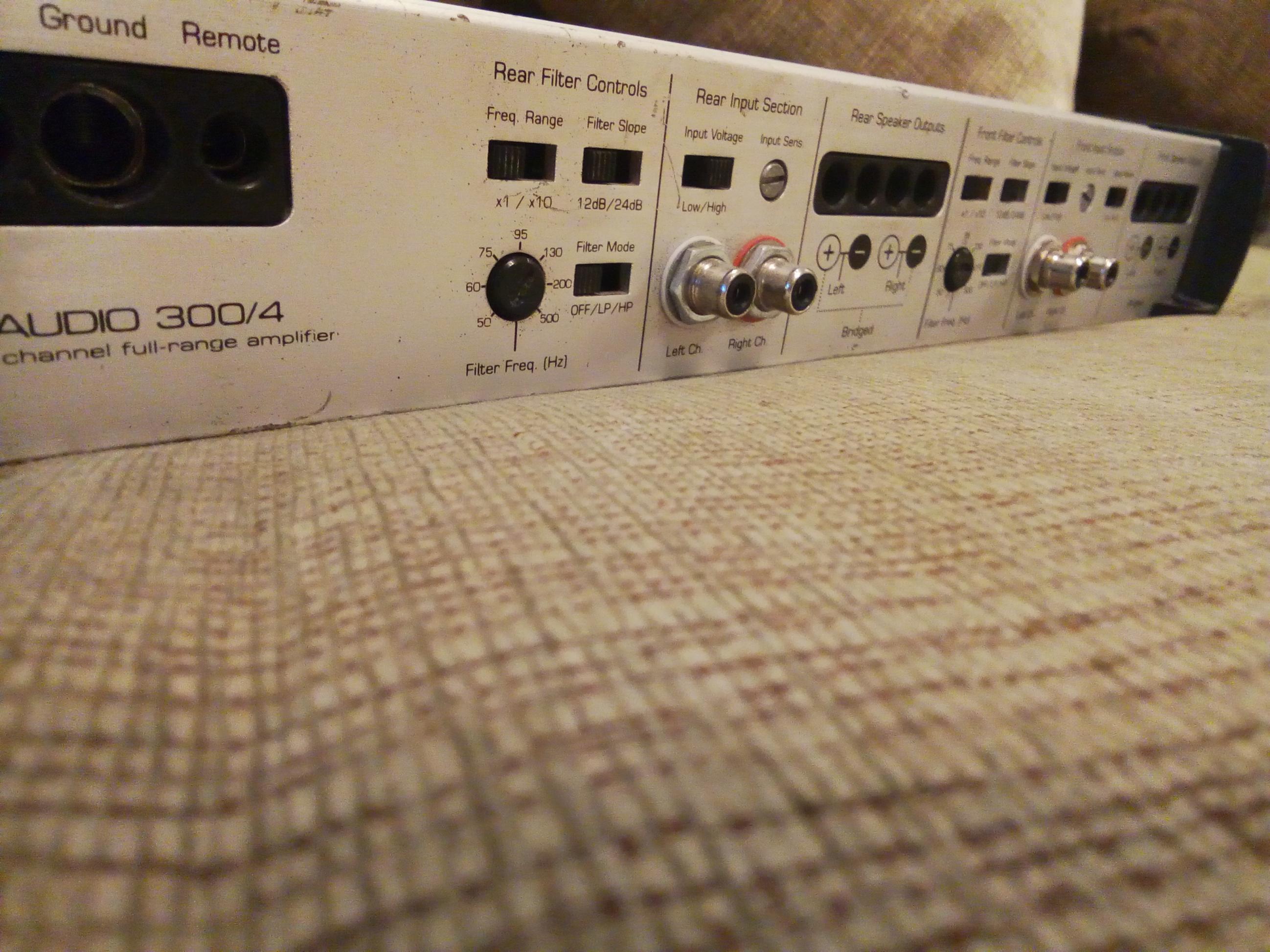 Продам JL AUDIO 300/4 Первой серии..Кореец. ..Замечательный звук . Работает все отлично .Регуляторы не хрипят. Отломано одно крайнее ребро (радиатор) на работу усилителя не влияет.Внешний вид на фото.