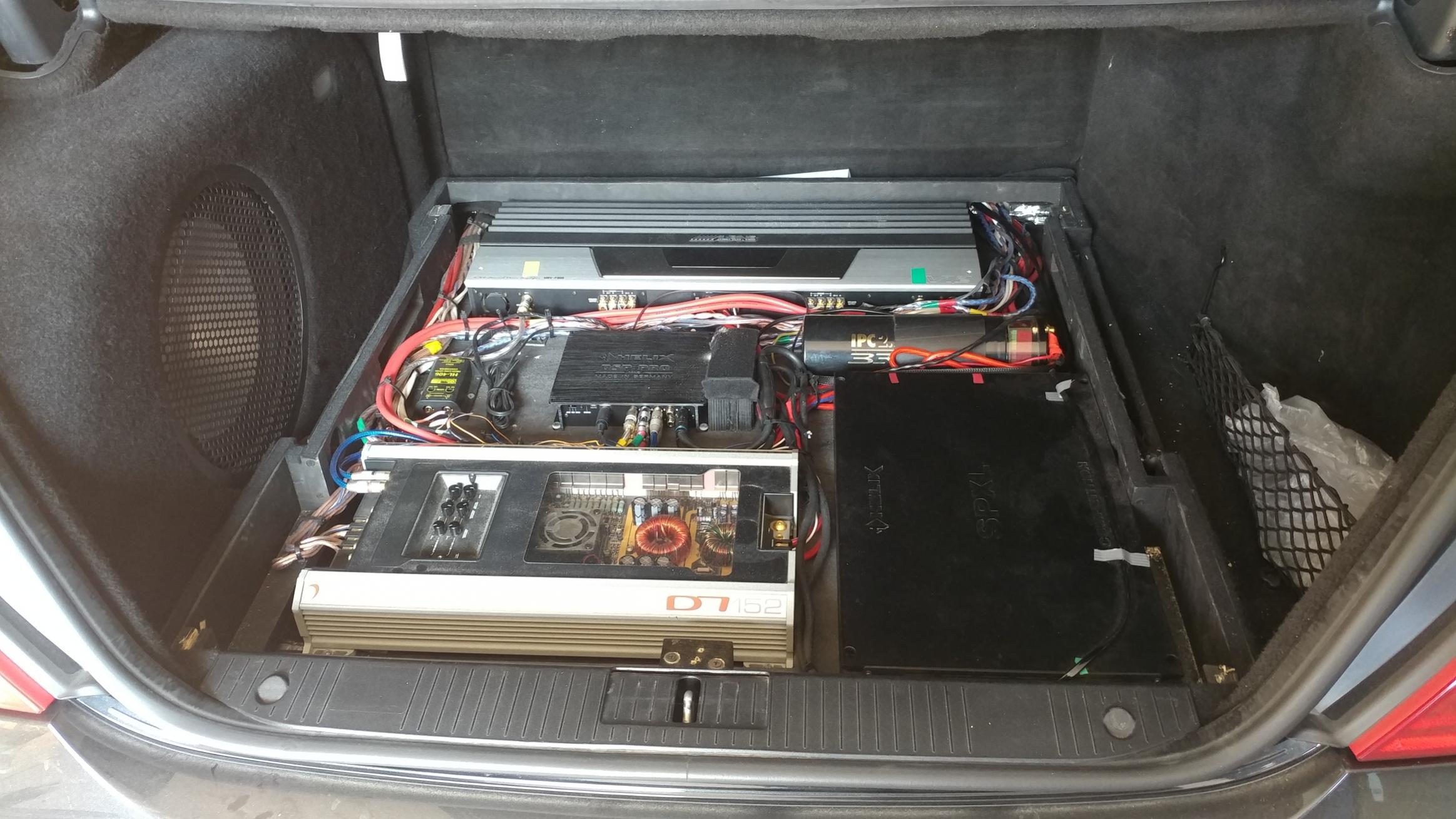 Изготовители авто, особенно бизнес -класса, напичкивают их кучей динамиков , многоканальным усилителем, процессором обьемного звука и т.д. А это в понимании БОЛЬШИНСТВА владельцев является незыблемым показателем качества звучания"!!)))) И только отдельные потребители все таки остаются НЕУДОВЛЕТВОРЕННЫМИ ни качеством ни неискаженной мощностью звучания.... Вот один из последних примеров нашей инсталляции :
