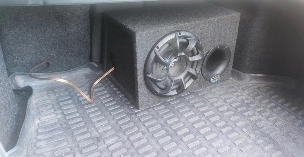 Отличный вариант для тех, кому важно место в багажнике, но хочется мощного баса.