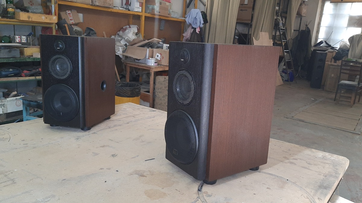 Отделка 2х цветный итальянский шпон и датское масло. С тыльной стороны НЧ бокса сделано углубление для размещения кроссовера НЧ ( или по желанию заказчика усилителя D-Class ).