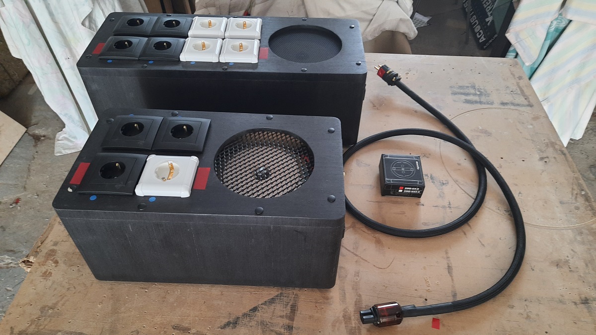 Вспомнился довольно интересный проект, который был реализован несколько лет назад. Задача была совместить домашний театр с топ хайфайной аудиосистемой. В качестве ресивера был выбран топовый Rotel RAP-1580. У него развитая система входов/выходов, регулировок и достойно звучащие каналы . В дальнейшем мы использовали его усилители для наших основных /фронтальных АС ( СЧ и ВЧ звено ) , басовые динамики АС питались от авторского встроенного усилителя D- Class Рном = 2 х 200вт, с ЭМОС. Предусматривался вариант активного сабвуфера, но потом отказались. Бас основных АС с ЭМОС уверенно работал с 20 Гц., да и экономней было. АС состояли из 2х отдельных корпусов ( НЧ секция и СЧ /ВЧ секция ), выполненных из 21мм фанеры с мощными распорками,передняя и задняя стенки -42 мм. Разводка VDH Snow Line, конденсаторы в фильтрах на этапе настройки Monacor, в окончательном варианте Jantzen Audio Z-Cap, Clarity Cap и Monacor. Покрытие 2х цветный итальянский шпон и датское масло. Динамики: НЧ - SB Acoustic Satori WO24P, СЧ- Fostex FX120, ВЧ - ScanSpeak Discovery.............. . |