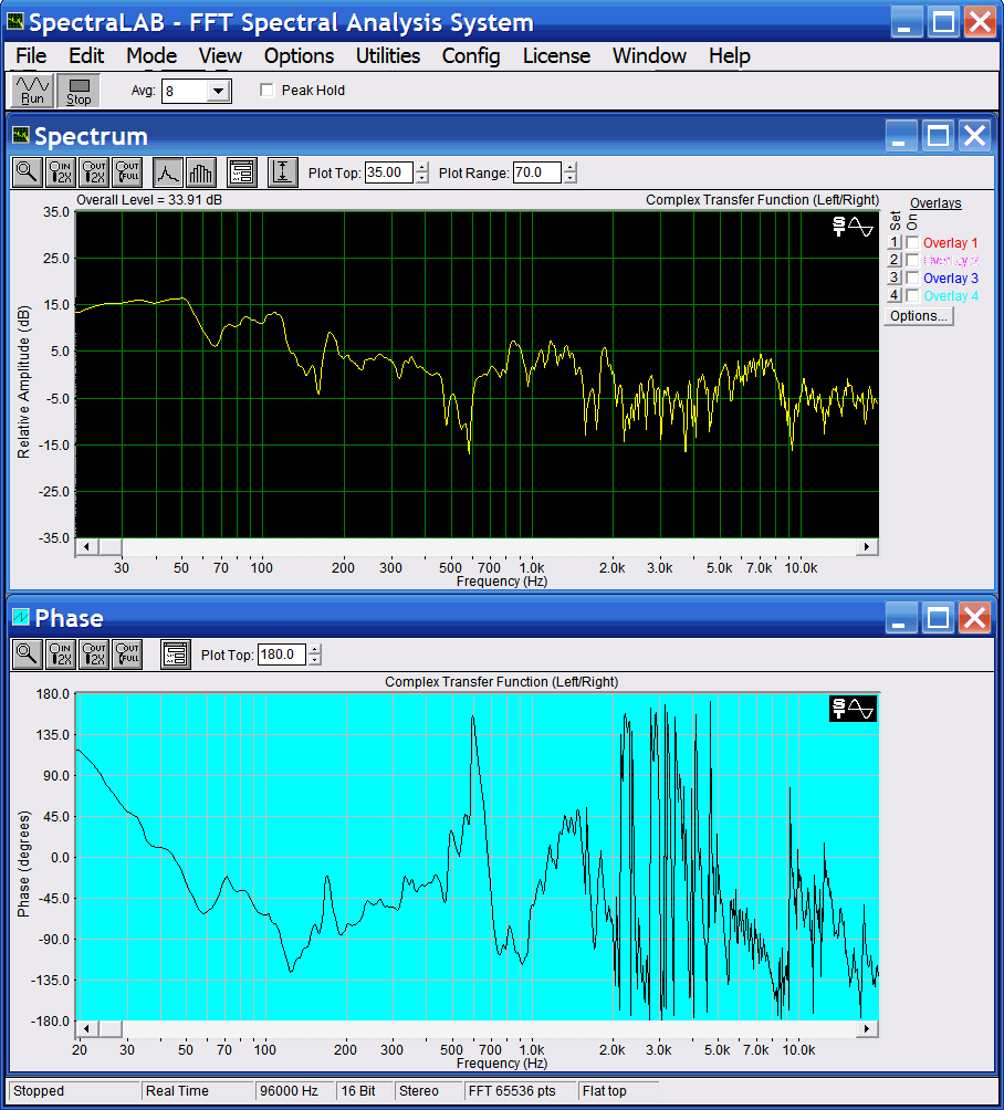 Главное на графиках уметь отделять мухи от котлет - ФЧХ системы от портящих его отражений. Могу предложить маленькую хитрость: при изменении задержки ФЧХ системы изменяется, а проблемные места остаются на месте. Таким образом можно понять, куда смотреть. У меня остались графики сравнений измерений несколькими программами, ленюсь расписать. Самая большая проблема в ранних отражениях. |