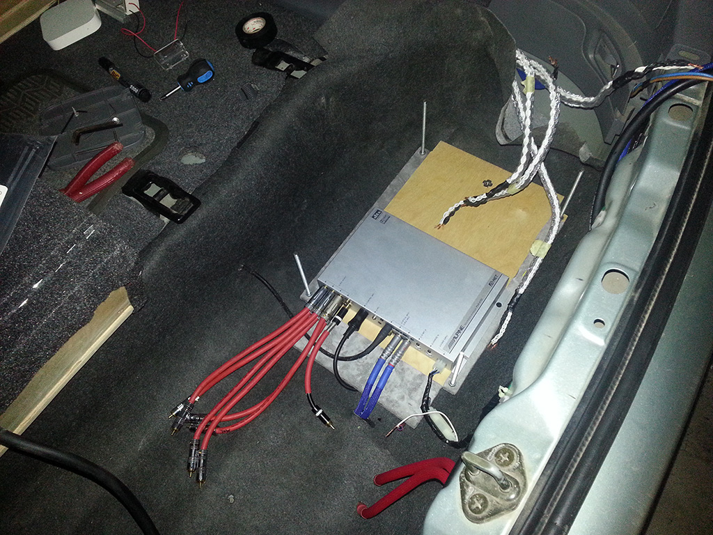 Чего бы и не показать, послушать позитив/негатив. :) Какое то время, наверное как и все, ездил с 2х компонентным фронтом DLS на кросах, 4х канальным усилителем DLS и сабиком (см. фото ниже). Короче, без особых заморочек. Описывать не имеет смысла что было. Были всякие разные покупки/продажи ГУ, акустики. Тоже не особо интересно. Сейчас нарисовалась пока такая картина. Pioneer AVH-P8450BT Alpine PXA-H701 + RUX-C700 Alpine MRV-F407 -> DD AT-28 + DD AW-3 Mosconi Gladen One 120.2 -> Icon UC-1624 Alpine PDX1.600M -> Hertz ES 300.4 ГУ поженил с процем по оптике. Об этом писал тут http://autozvuk.org/forum2/showthread.php?t=19684. Сейчас заморочка "научить" ГУ по цифре играть со всех источников (кроме CD- SD, USB, радио). Пока что в процессе. Ну и далее- фото. Изначально была сделана шумка дверей и выглядело это так (так вообщем то и ездил то самое какое то время). Пришло время доставать мид, как тут любят говорить, из под одеяла. :) |