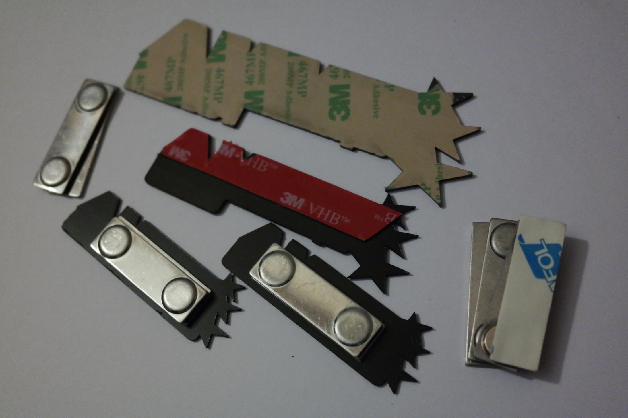 Акрил 1,5 мм (варианты - золото/чёрный или серебро/черный). Шильдики - на двухстороннем качественном скотче (кто в теме - тот поймёт что оторвать не оторвёшь). Бейджи - на двухстороннем магните, ничего не надо протыкать в одежде. Бэйджи будут бесплатными, механизм чтобы не получилось что бэйдж есть - участника нет :oh: --- продумаем. Шильды на авто - скорее всего будут в продаже. В зависимости от размера - ценник. пс. На фото все шильдики (кроме большого ЕММА) в защитной плёнке. Она снимается. Вложение 58447 Вложение 58448 Вложение 58449 Вложение 58450 Вложение 58451 |