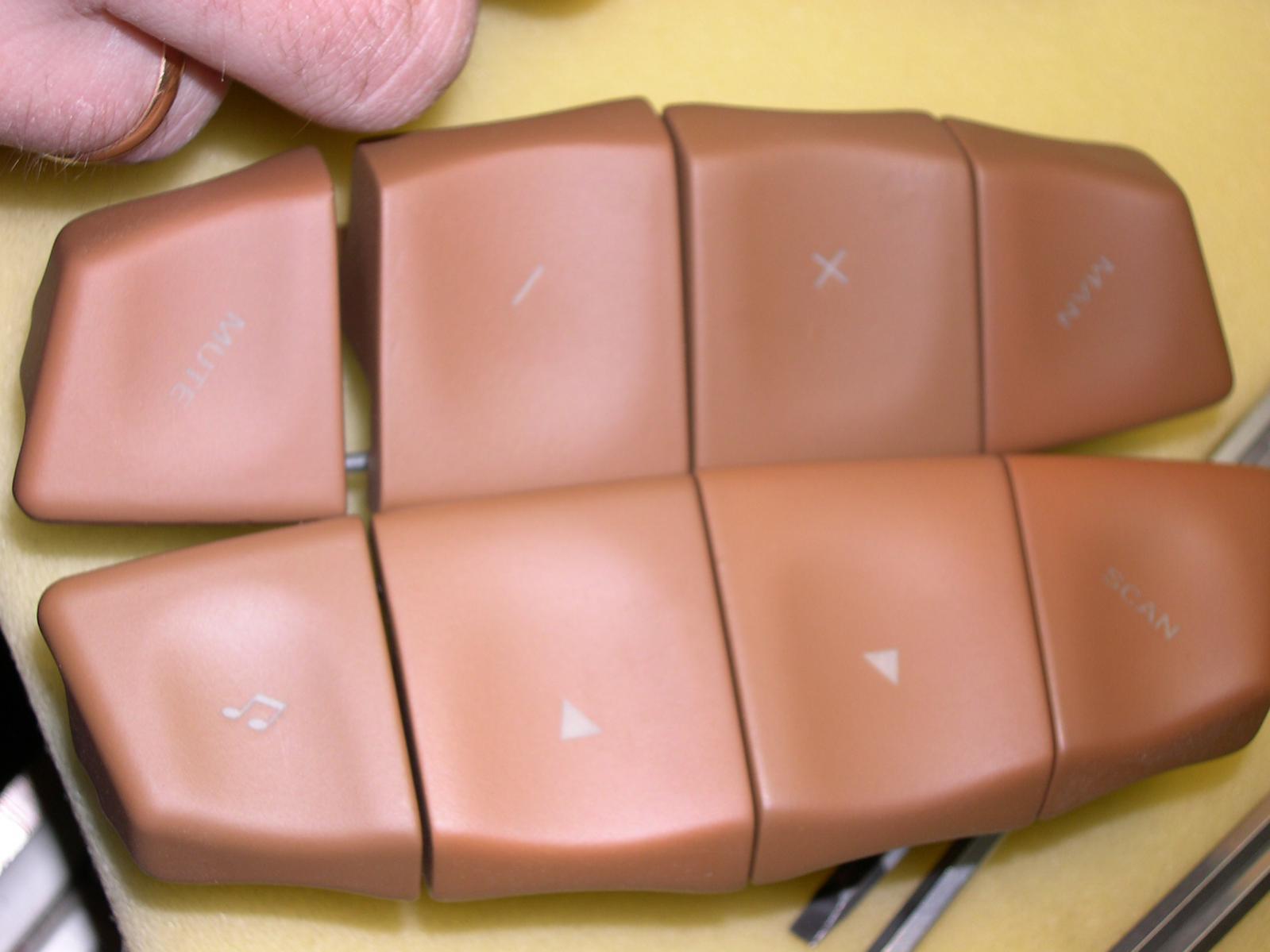 http://sound.dp.ua/podium/knopka.jpg Надписи CD, CHR, AM, FM светятся. У меня очень хитрая задача: - Сделать другие надписи - Заставить их светится Кнопка изготовлена методом литься. т.е. разобрать ее невозможно. первый слой прозрачный пластик, который пропускает свет, второй, пластик окрашенный в серебряный цвет, на который нанесены надписи. Думал зашпаклевать имеющиеся надписи и нарезать новые, только вот как или чем нарезать новые не знаю. Поделитесь опытом (если такой есть) или советом Спасибо |
