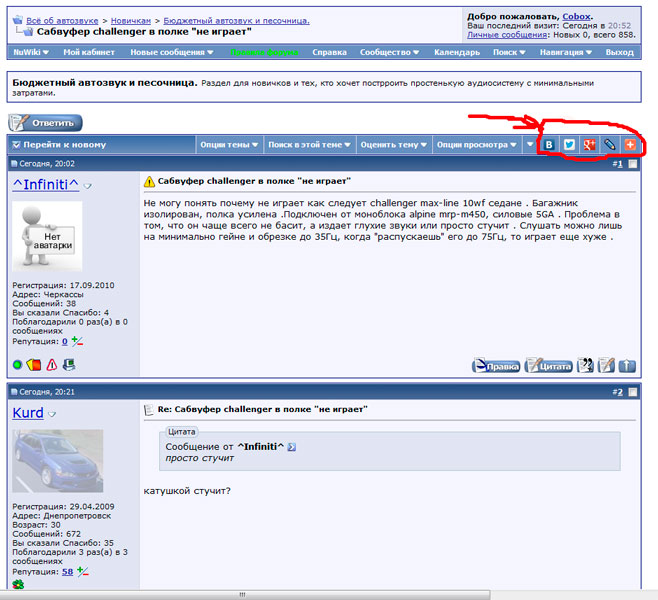 Для любителей социальных сетей на форум добалена опция автоматической передачи ссылок с форума в соцсети.