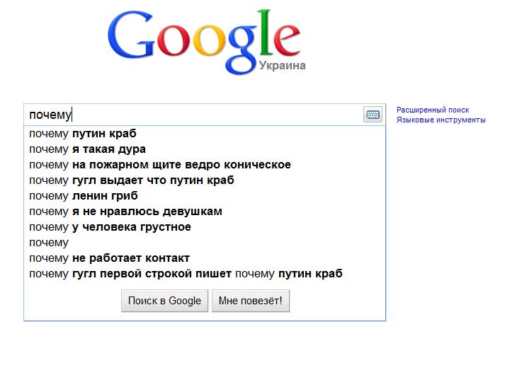 "почему гугл первой строкой пишет почему путин краб" очень даже логичный вопрос:D