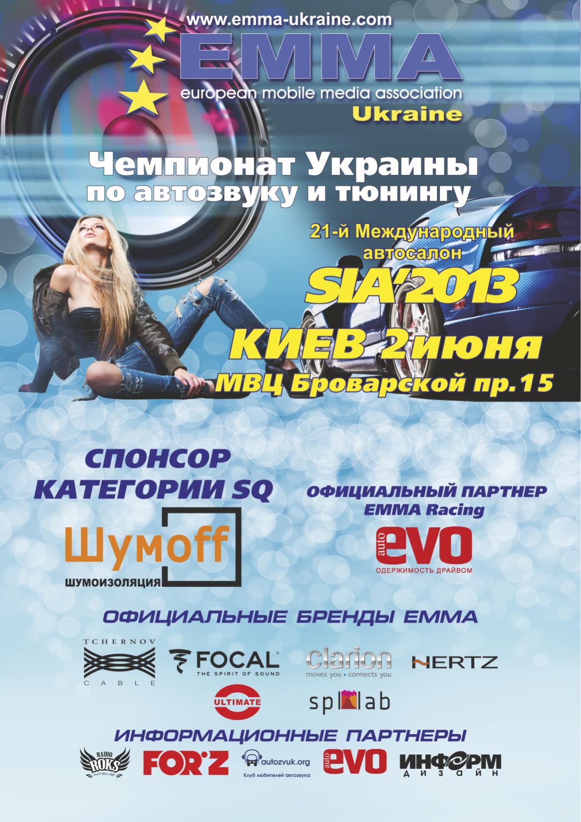 Второй этап Чемпионата Украины по автозвуку и тюнингу ЕММА состоится 2 июня 2013 г. в г.Киев.