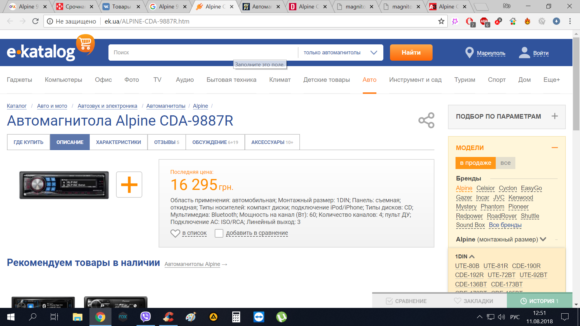 Alpine 9887r + кабель для iPod