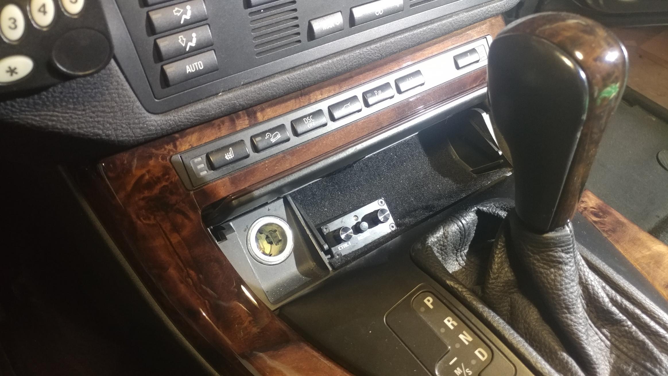 Наконец то добрались до аудиовхода и управления процем... В бардачке инсталировали USB3 вход по скоростному цифровому кабелю и разьем питания 5В ( здесь будет подключаться подзаряжаться хай-фай цифровой всеформатный портативный плейер Sony ). Рядышком и аналоговый вход....на всякий случай.А в пепельнице удалось смонтировать ДУ процессора ( громкость, уровень саба, пресеты) .