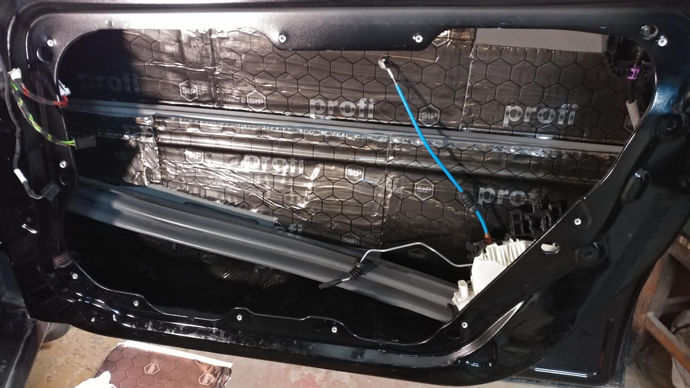 Итак, новый проект Mercedes GLA 220D... полная шумовиброизоляция и модернизация штатной аудиосистемы. Машина ОЧЕНЬ компактная, места естественно мало, поэтому об аудиосистеме немного позже. А пока разборка салона ...не простая, хорошо что жесткий ковер состоит из нескольких частей..за это НЕМЦАМ спасибо! Но вот двери ..это уже нне тот компот. Карты срываются ОГРОМНЫМ усилием и возможностью поломать места крепления клипс((( Огромные трудности со снятием пластмассовых вставок со стеклоподьемным механизмом.Оригинально крепление штатных мидбасов: на заклепках со стороны улицы.. В общем очень непросто многое...
