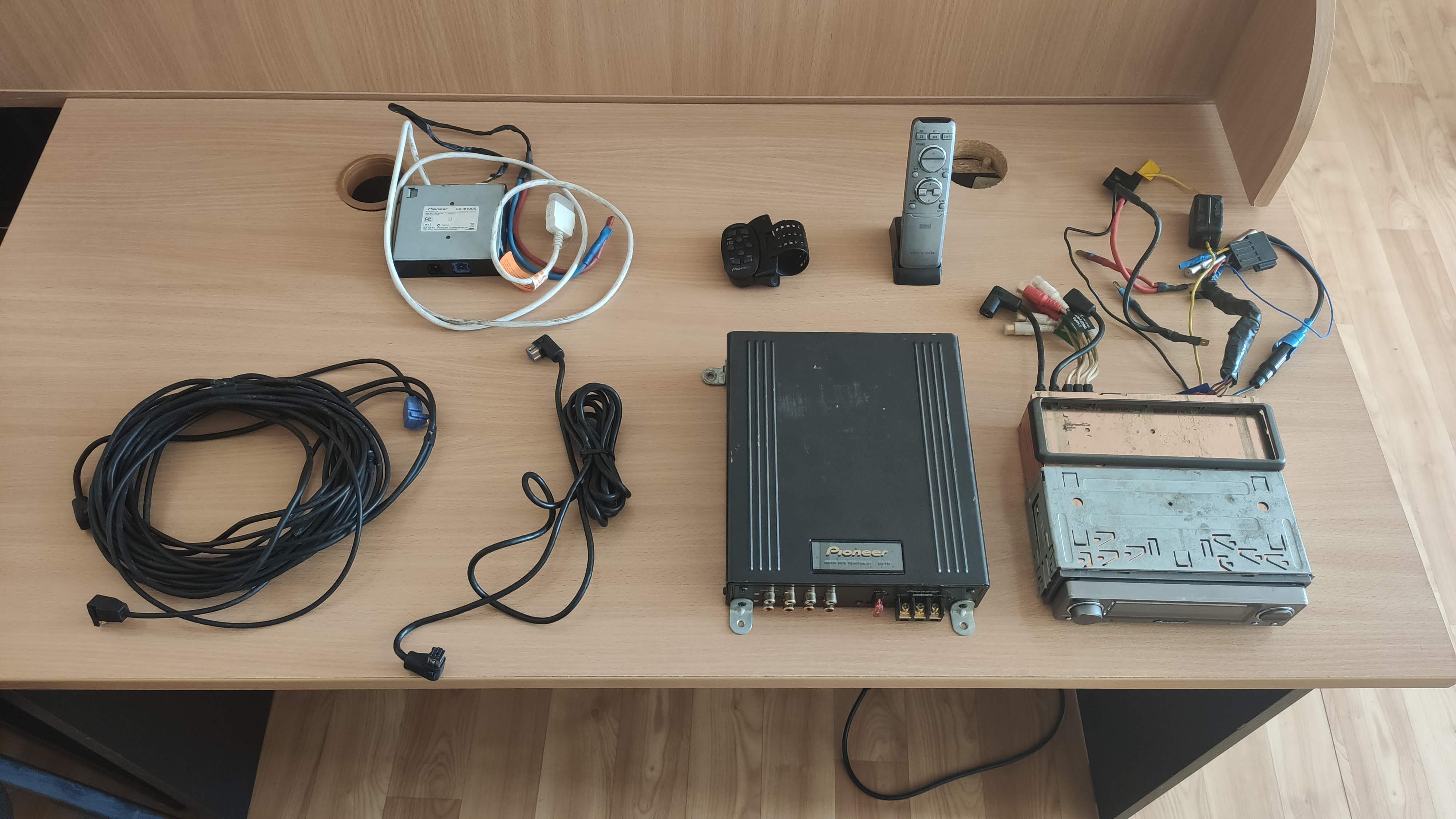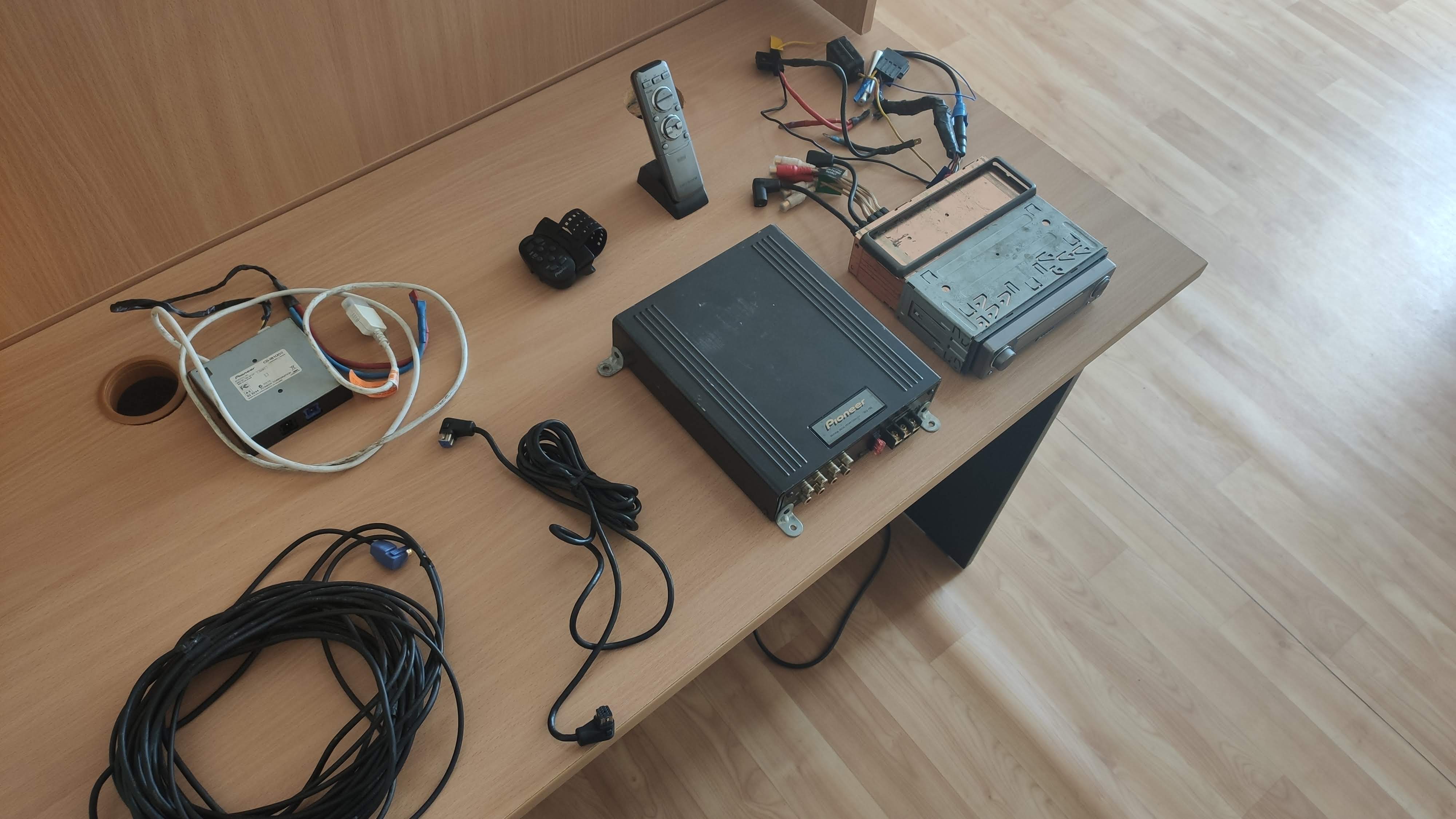 Продам свою отличную чемпионскую связку которая справится с любой 2-3х полоской, с адаптером под ipod. Расписывать смысла нет, кто знает что это такое, тот знает, остальным оно не нужно) Работало у меня в авто, коробки, к сожалению, не сохранились, продается как есть. Находится в Киеве, продажа из рук в руки либо по полной предоплате, можно на карту эквивалент в гривне по курсу продажи привата. На посмотреть не высылаю. Работает все полностью, состояние видно на фото, по запросу сделаю дополнительные. В комплекте: голова, проц, все кабеля, адаптер для ipod, пульт, пульт на руль(треснул ремешок).