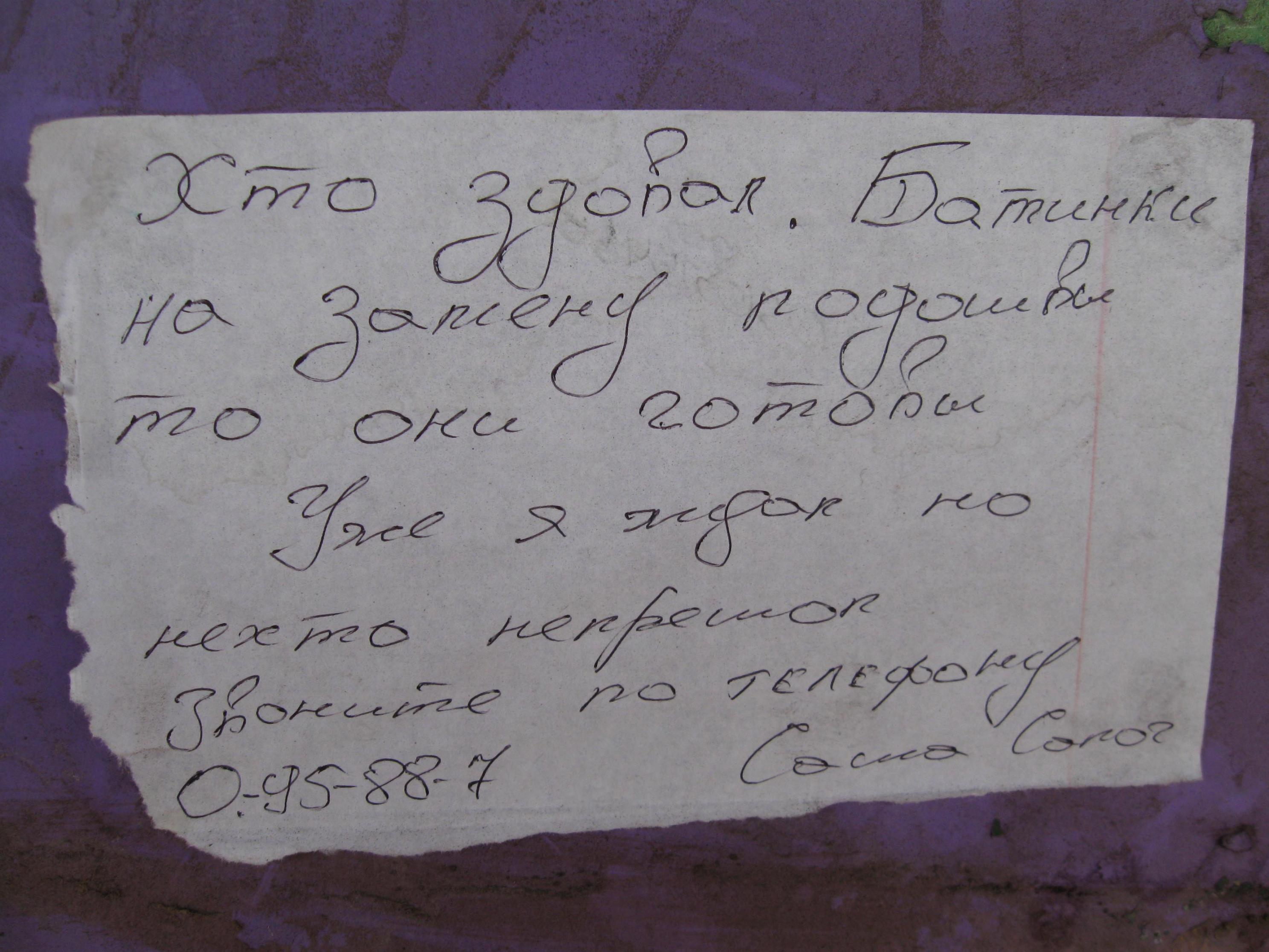 Вот такое объявление на обувной мастерской. Номер умышленно затерт.