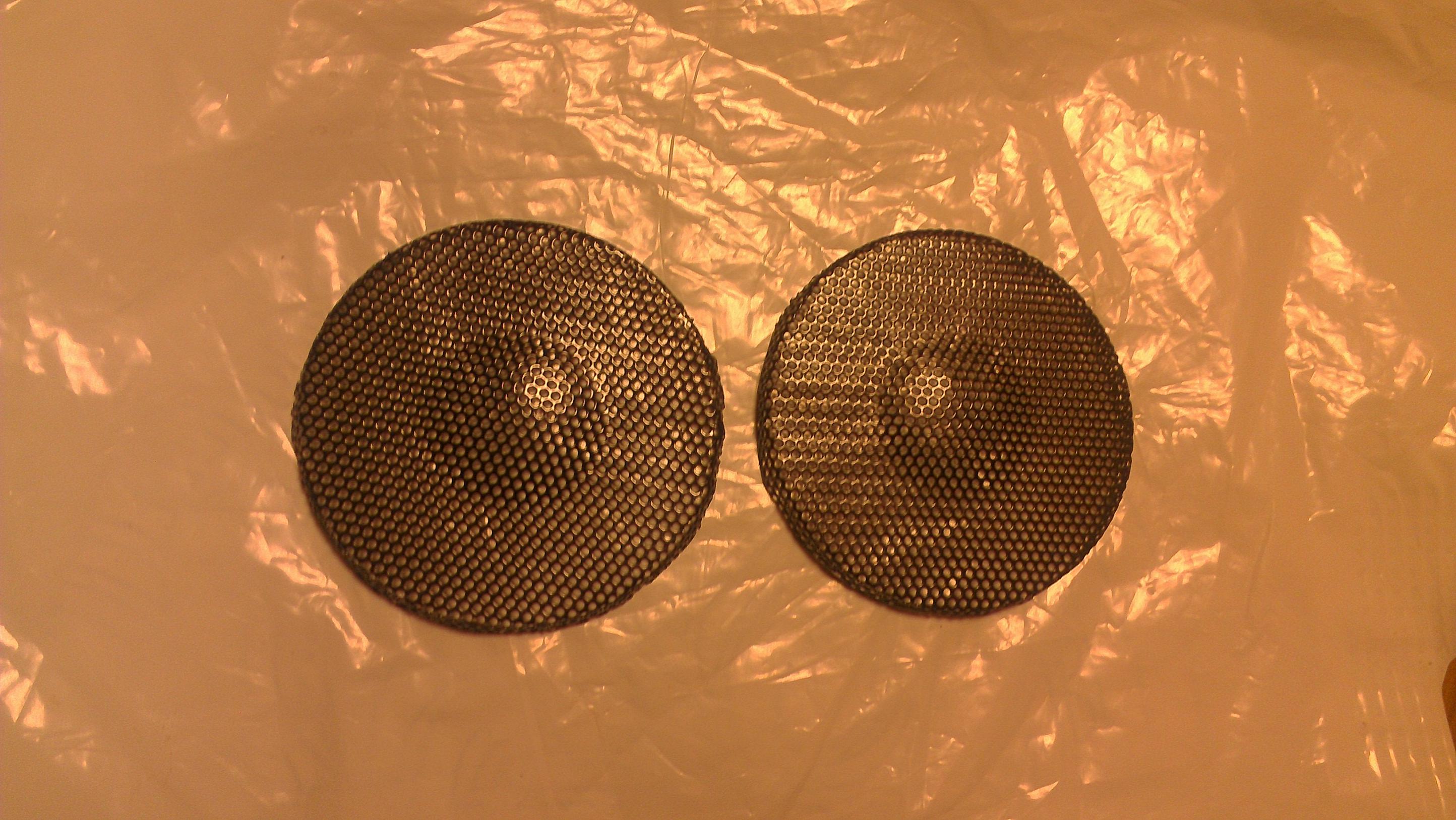 Вырезаем ножницами по металлу с запасом сетку от мидбаса. Кладем сетку на матрицу и прижимаем пуансоном. Внешний размер пуансона на 2-3 мм меньше внутреннего размера матрицы. Зажимаем все это в тиски либо пресс, и потихоньку зажимаем. Вот что получилось у меня в итоге: Последний раз редактировалось dmons; 19.03.2014 в 23:25. |