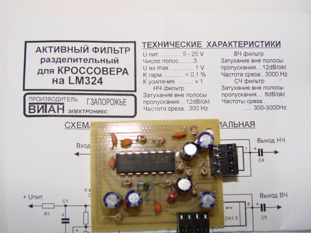 Предложу 3х полосный крос только для линеек RCA, спаянная плата конструктор на микросхеме LM324.