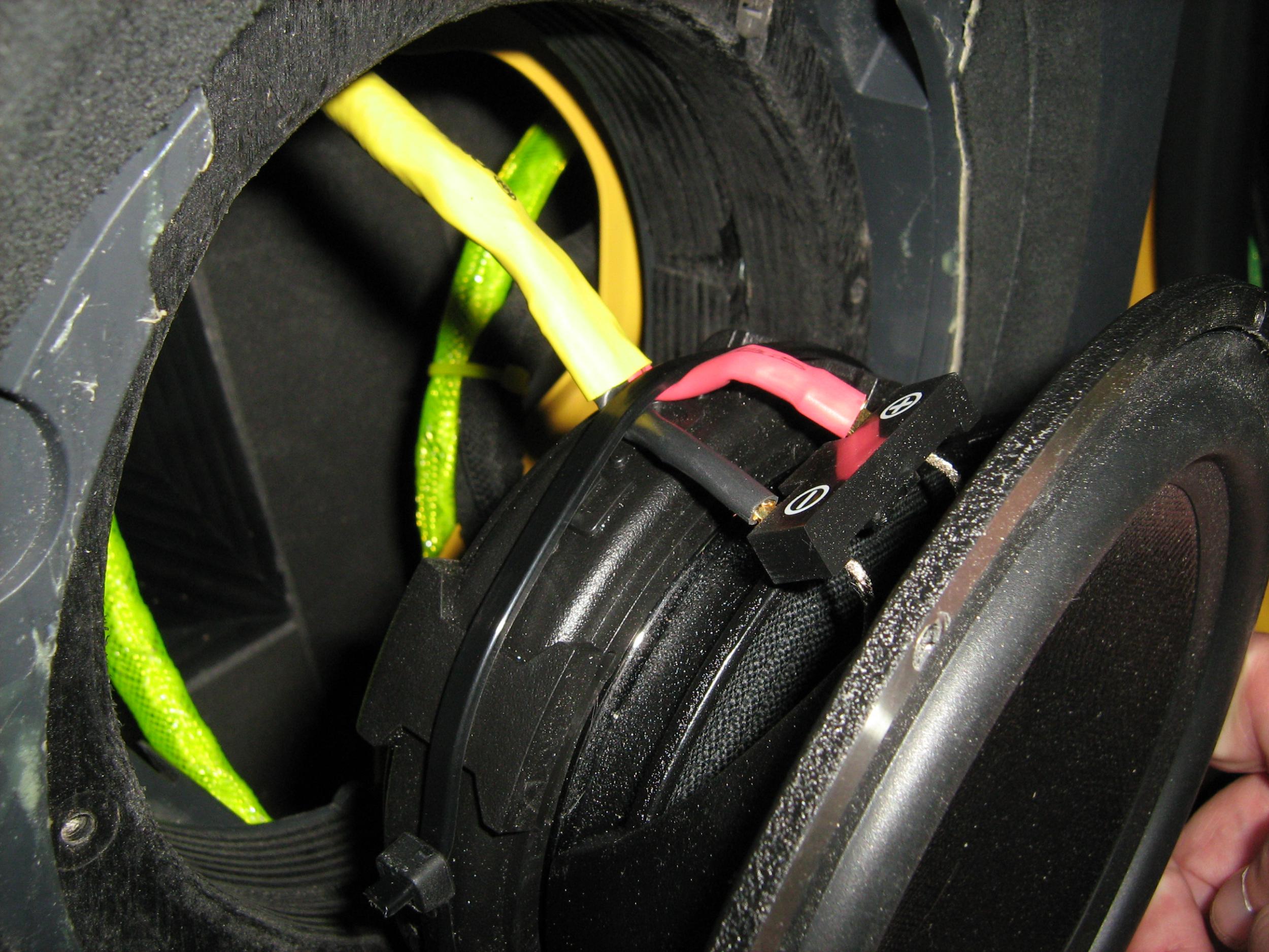 Проставочные кольца с закладными гайками под болтовое крепление динамика, жёсткое крепление колец к внутренней филёнка-карта-динамик. Вставки на дверной карте - серая перфорированная алькантара, в общем стиле дизайна салона. Карман перетянут алькантарой без перфорации. Защитная сетка динамика - штатная Сеатовская, выкрашена в "рояльный лак". Просветлять решётку не стали - замеры показали что, грубо говоря, звуку не мешает, да и в "трёшке" это не столь критично. |