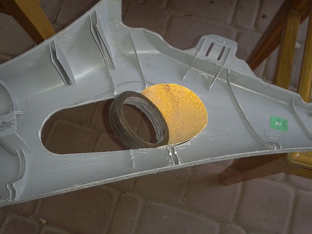 Якщо вже клеїти, то краще поліуретановим герметиком користуватись, 3М-івським. А ще краще, як написав вище, закріпити гвинтами і пропаяти, а зверху шпатлівкою. Або інші матеріали. От, знайшов в архівах, колись давно робив подібну річ, там впуклість і випуклість з фанери на гарячий клей (в смислі, промазуєш клеєм і прикручуєш, а не клей грієш ), фініш шпатлівкою, потім алькантара.