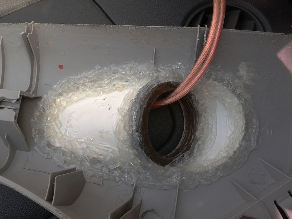 А что там непонятного? Вырезали нишу для ВЧ, из банки нарезали пластмассы, и это все дело приклеили термоклеем (что ненадежно ИМХО)