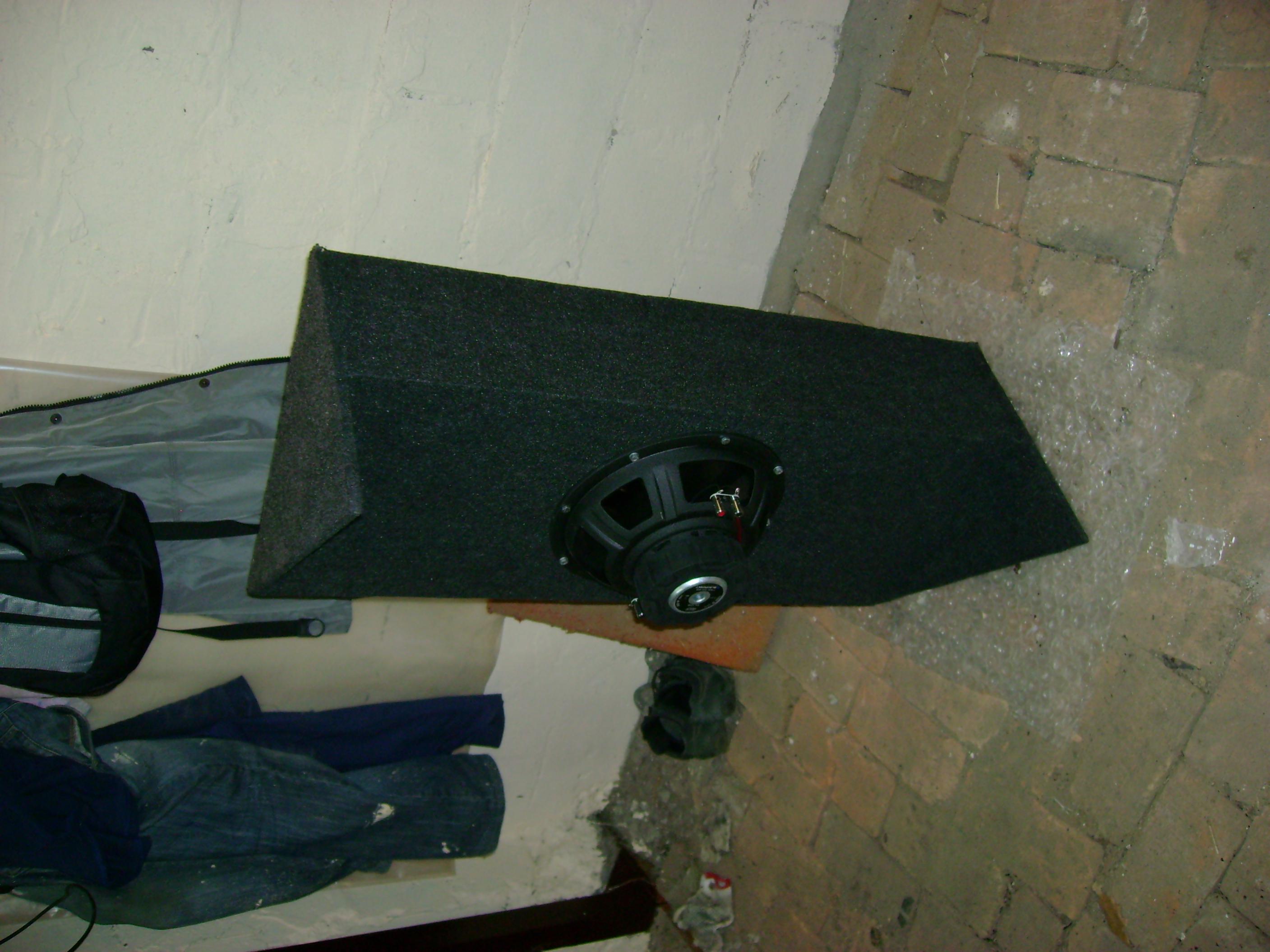 У меня когда-то была Фиеста мк6. Стояла 10" корзиной наружу. Ящик ставился и снимался при сложенных задних сиденьях через любую заднюю дверь. Через проем багажника было почти нереально.